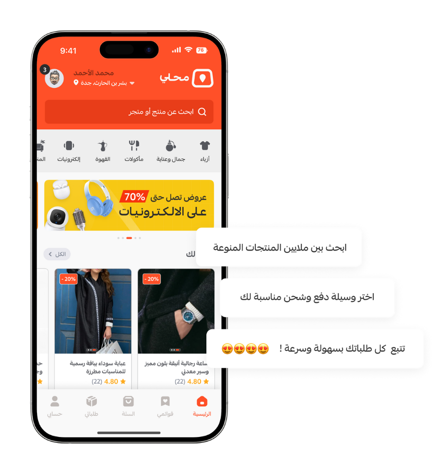 أكبر منصة سعوديَّة، تتيح تجربة شراء مخصصة، بين عشرات آلاف المتاجر المحليَّة على منصة سلة، وملايين المنتجات المميَّزة، مع إمكانية البحث باسم وتصنيف المنتج، والمدينة.. باختصار، محلِّي تجربة تسوُّق محليَّة فريدة!