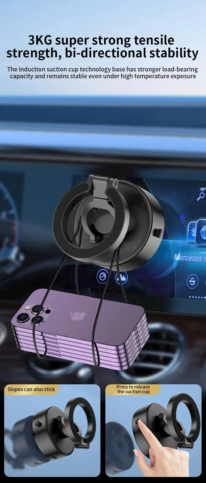حامل هاتف قابل للدوران 360 ° في السيارة لهاتف آيفون وسامسونج وشاومي.شفط مغناطيسي