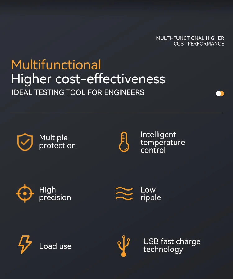 9. يتراوح الجهد الناتج من 0 إلى 30 فولت تصنيف الجهد مع التعديل المستمر.