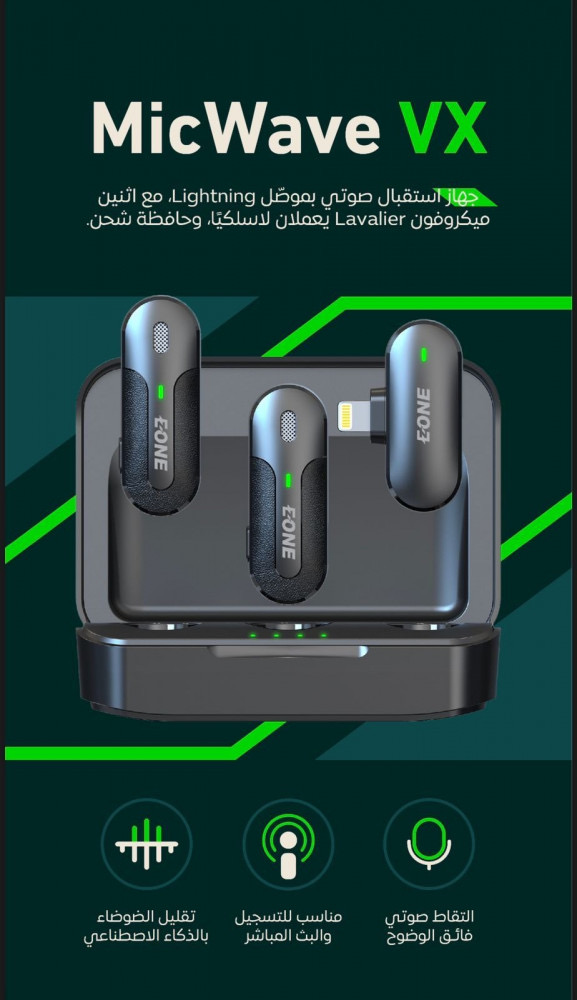 اي ون - ثنين مايكات احترافيه للجوال بمنفذ لايتنينج
