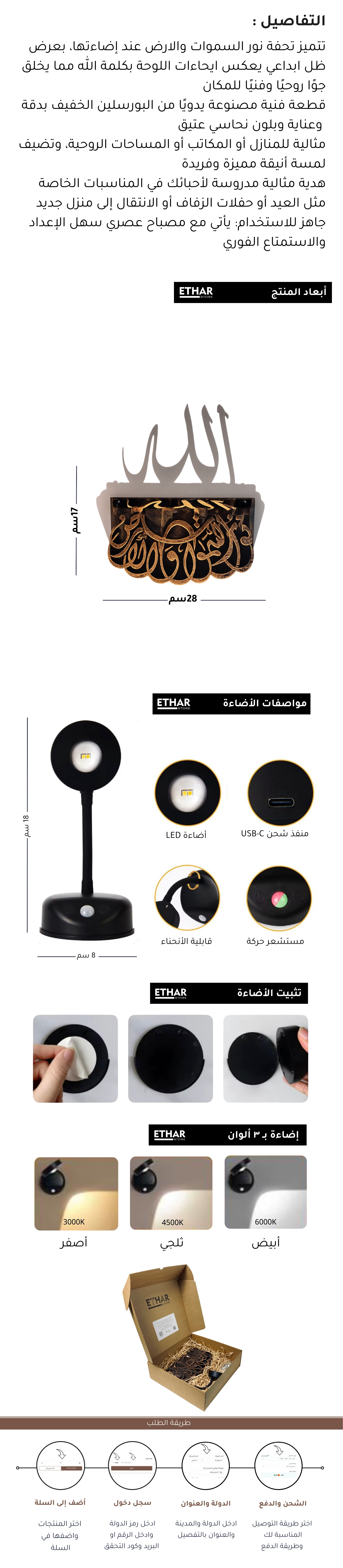 تحفة ظل ( نور السموات والأرض ) مع إضاءة قابلة للشحن