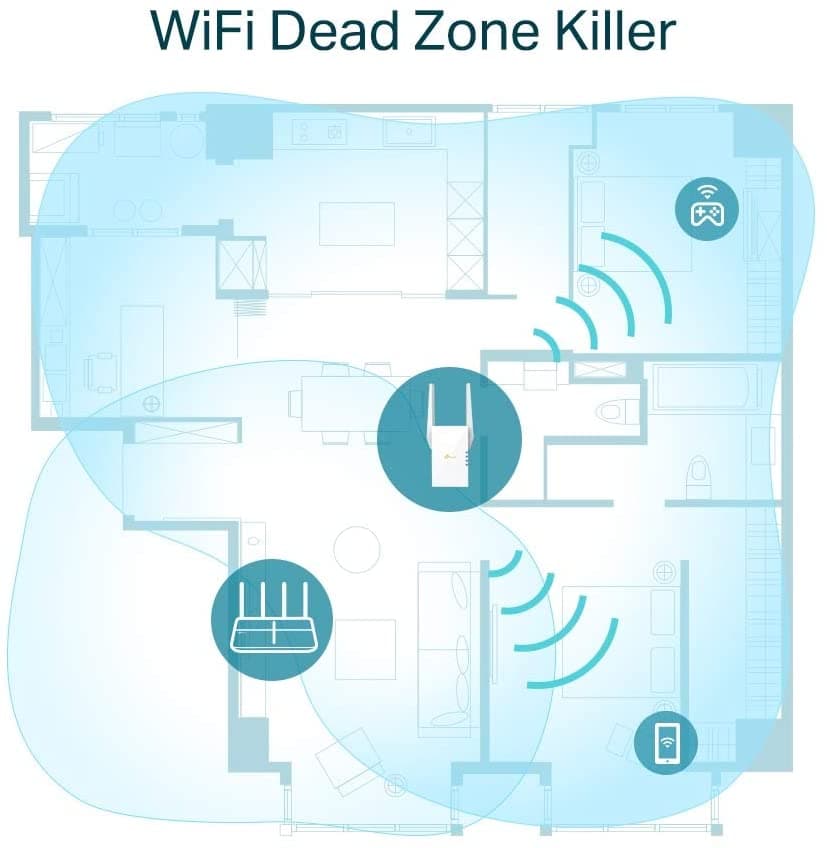 Tp-Link موسع نطاق Wi-Fi 6 ثنائي النطاق AX1800، موسع النطاق العريض/Wi-Fi، معزز Wi-Fi/نقطة اتصال مع