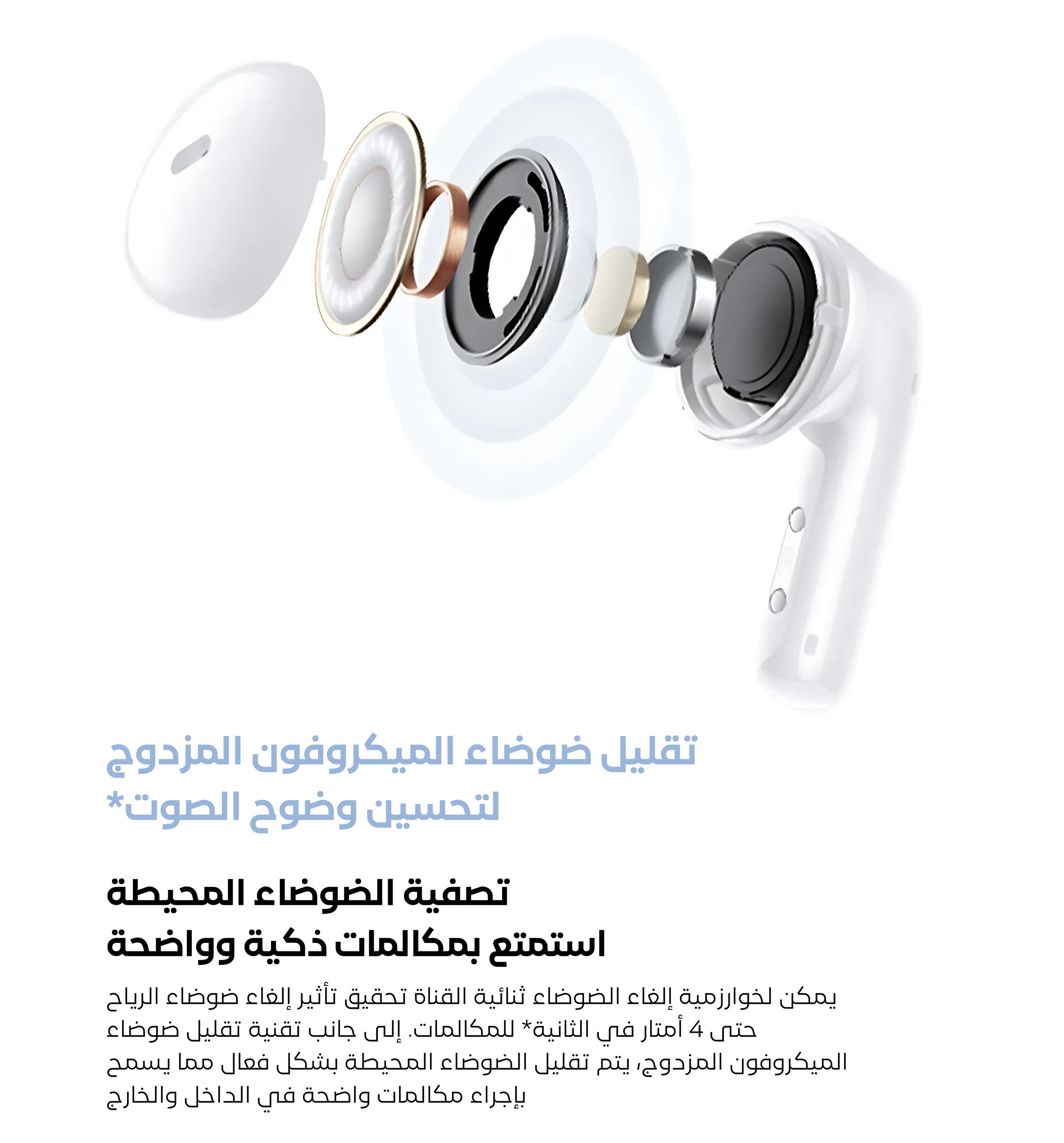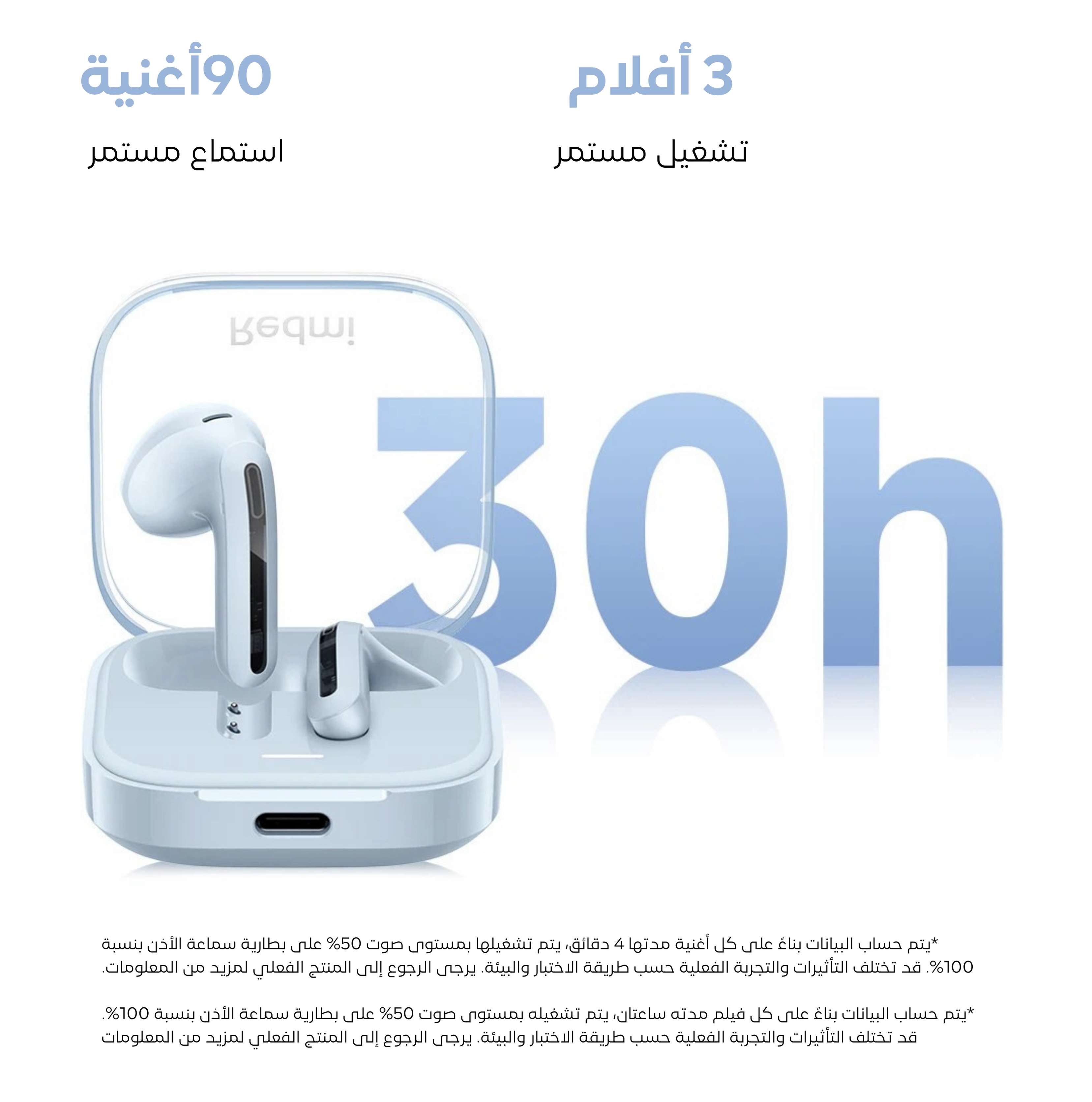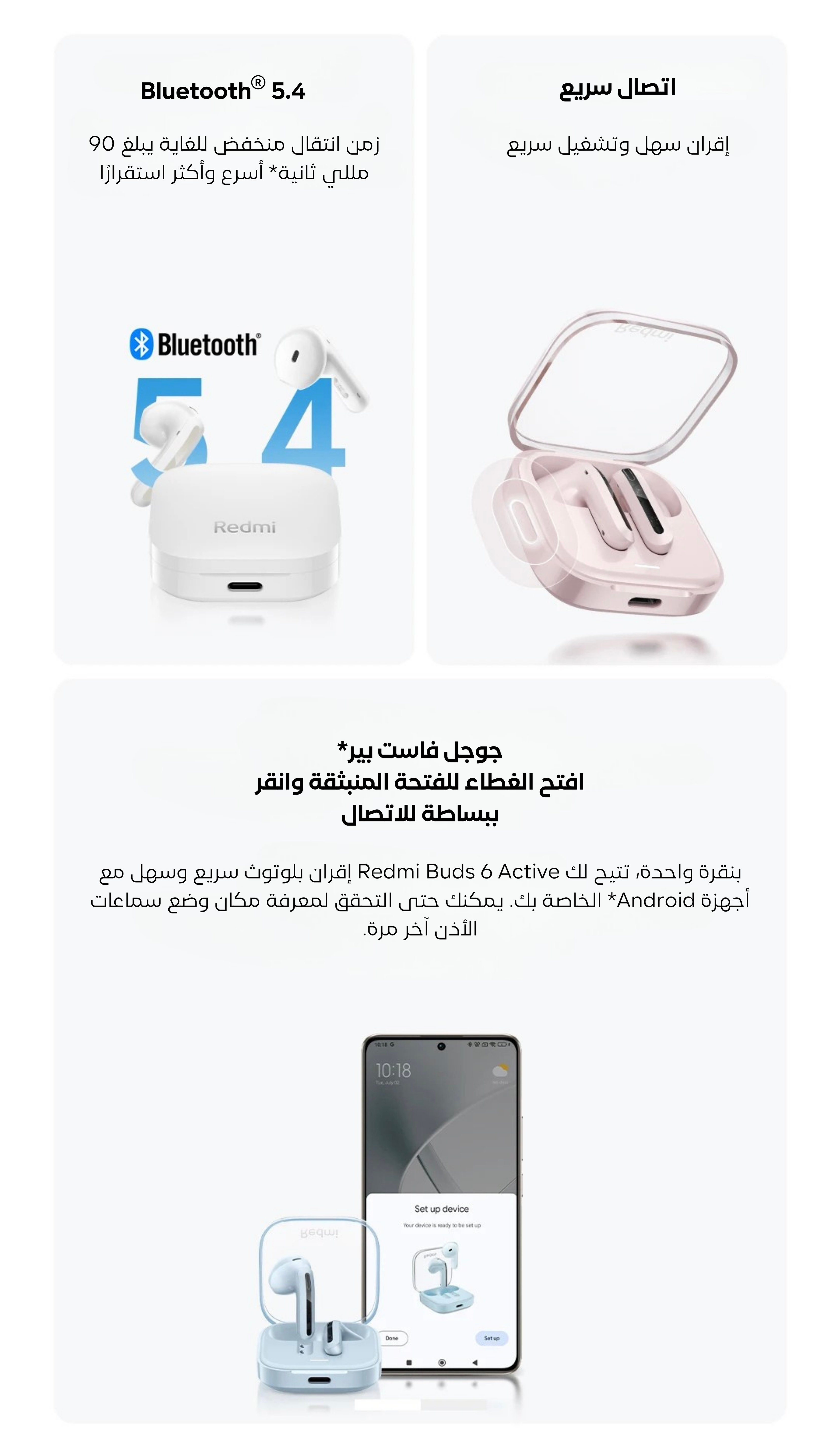 شاومي ريدمي بودز 6 اكتف، لاسلكية، شحن تايب سي، ابيض