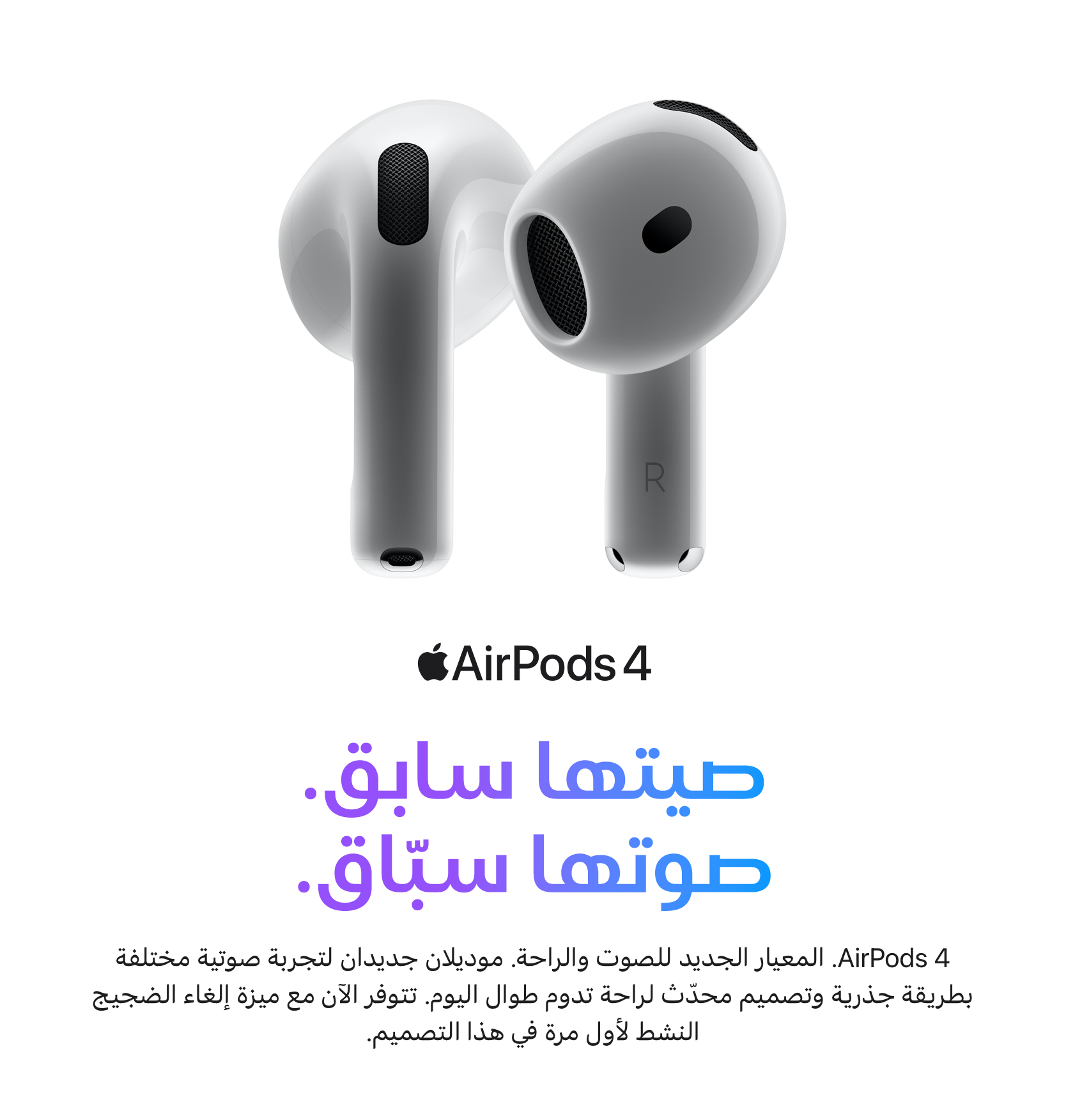 ابل، إيربودز الجيل الرابع ، مع خاصية عزل الصوت، أبيض