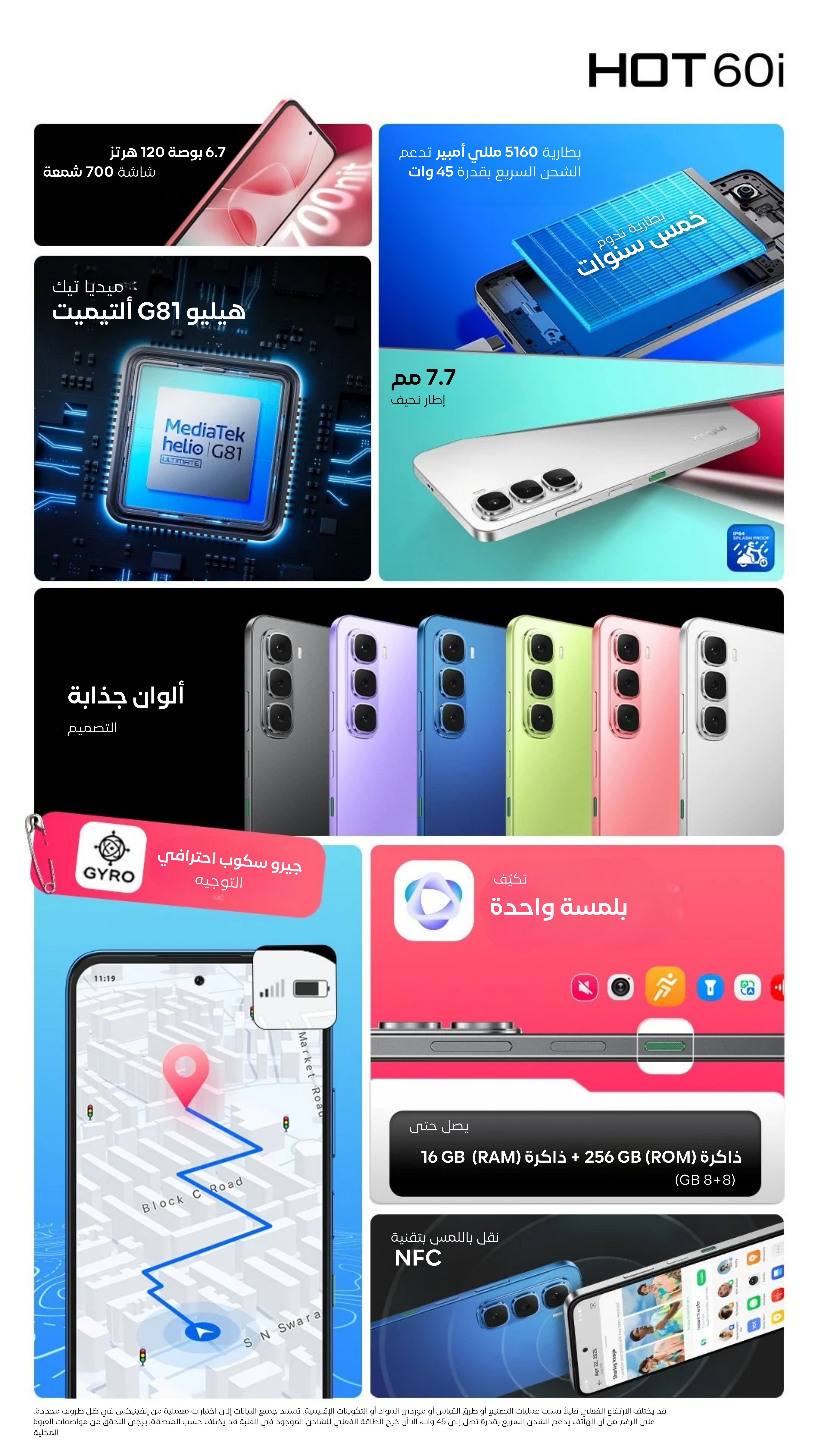 مواصفات Infinix Hot 60i – 256 GB رام 8+8 GB: