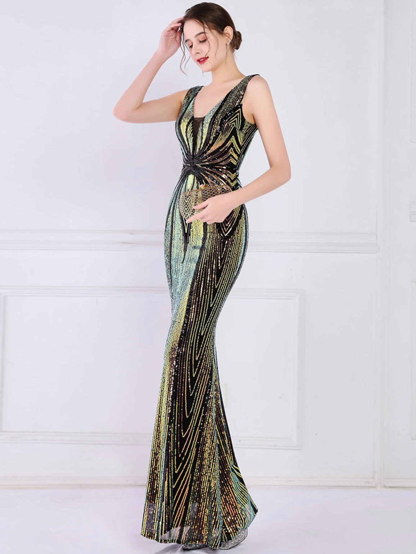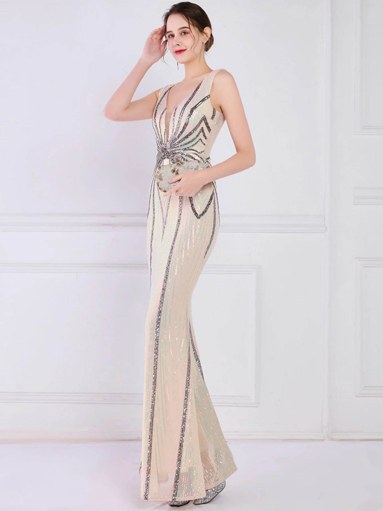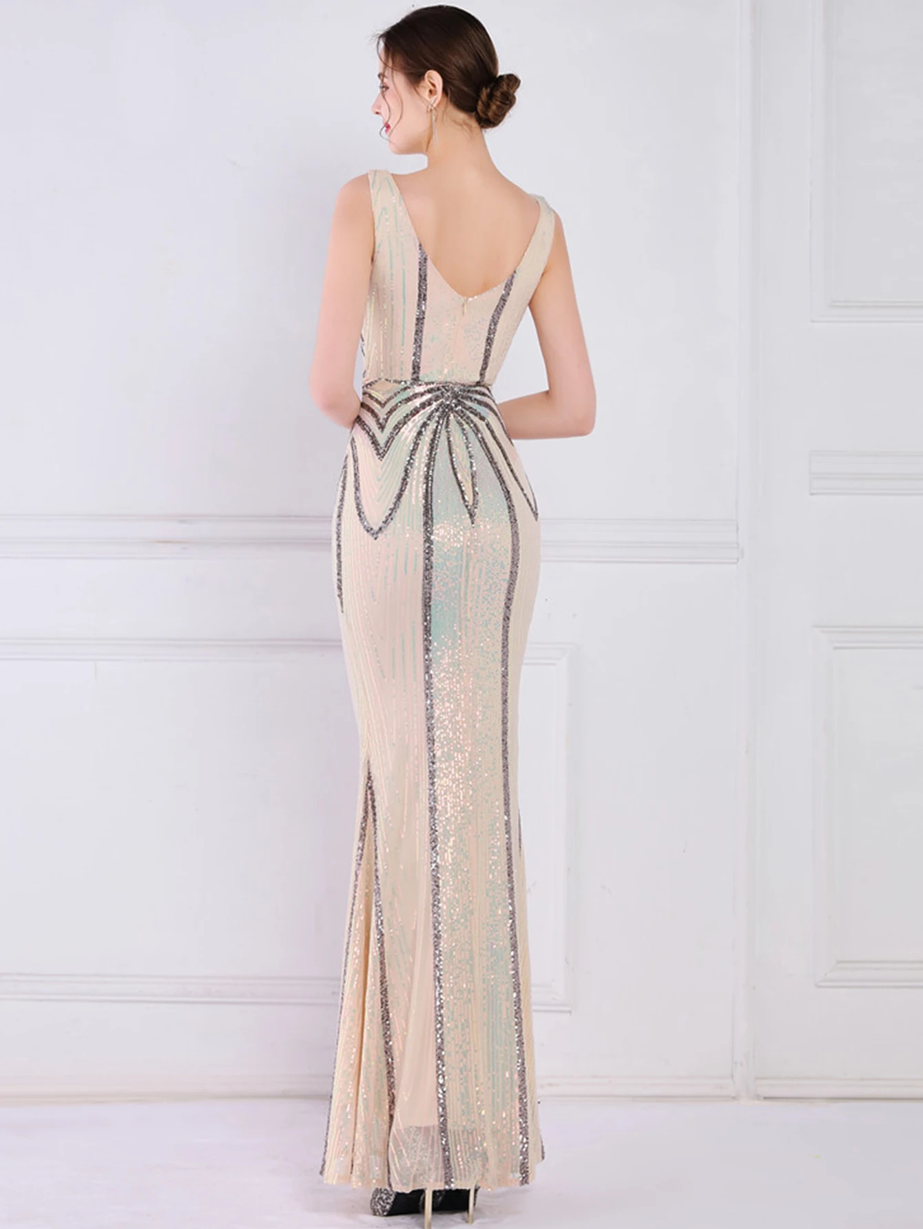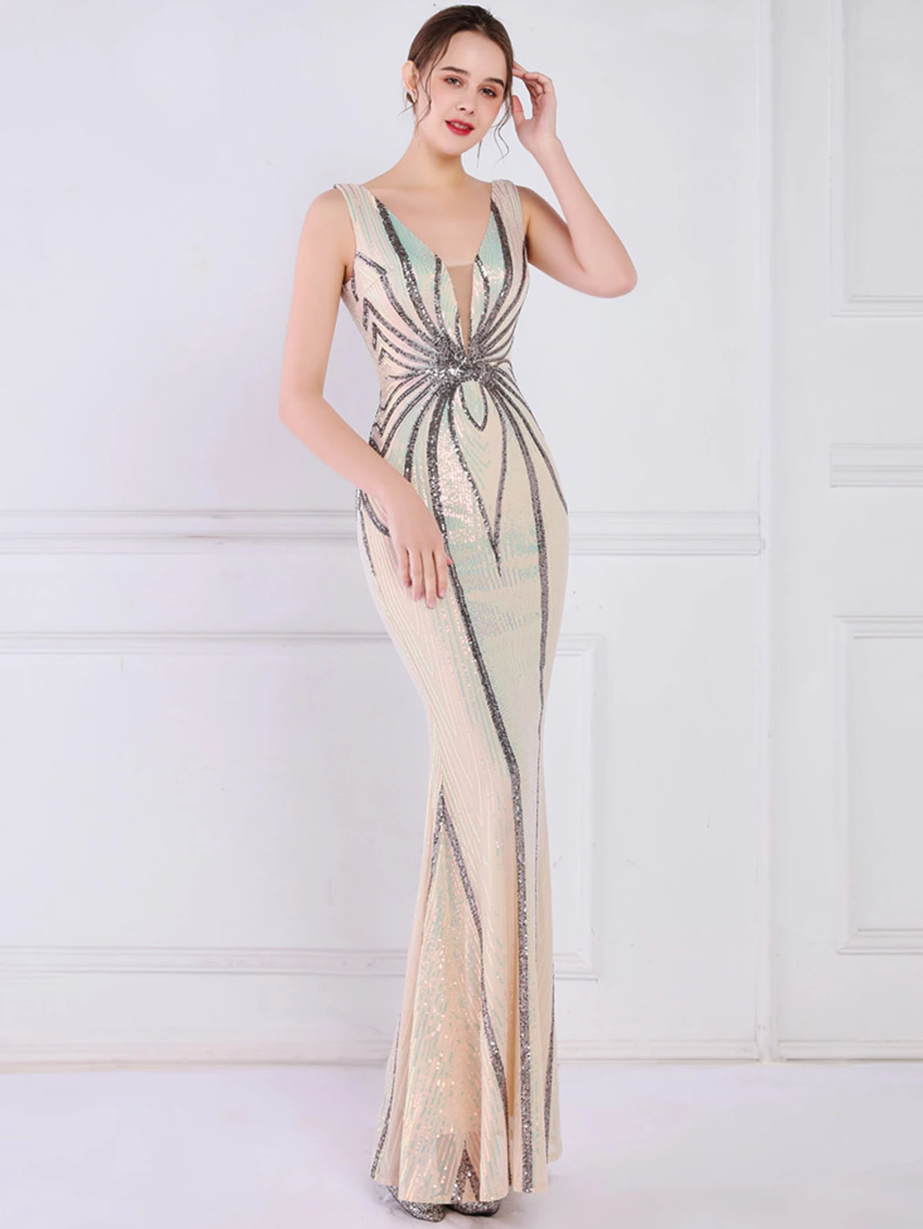 - فستان صيفي نسائي مثير أسود أبيض طويل مزين بالترتر ، أنيق ، حفلة عيد ميلاد ، فساتين طويلة ، فاخر ، رسمي ، حفلة موسيقية ، مسائية