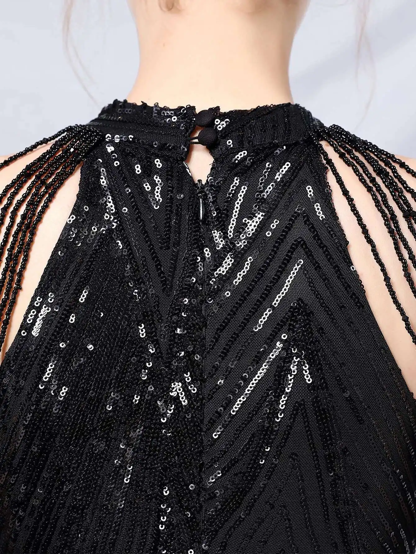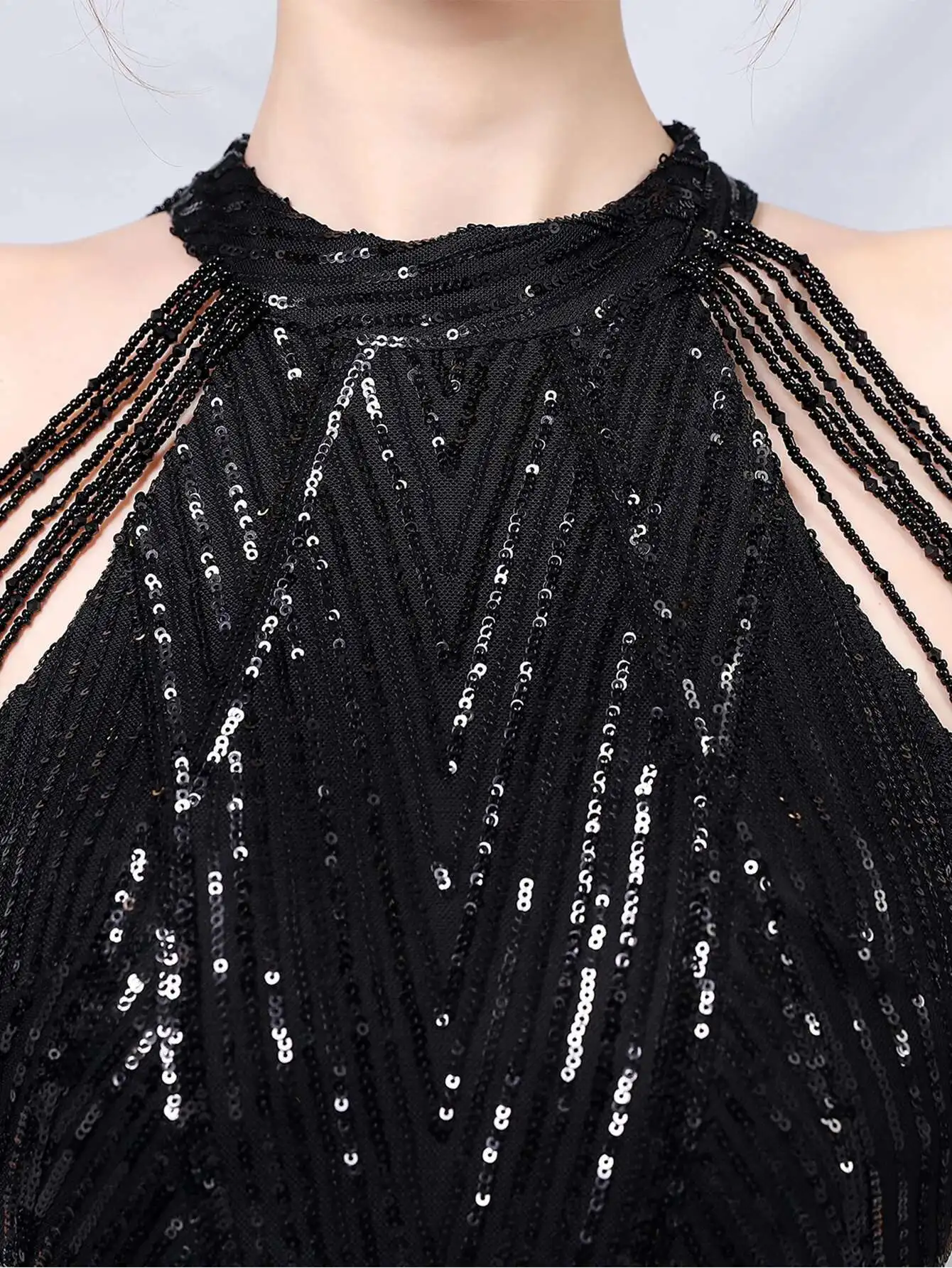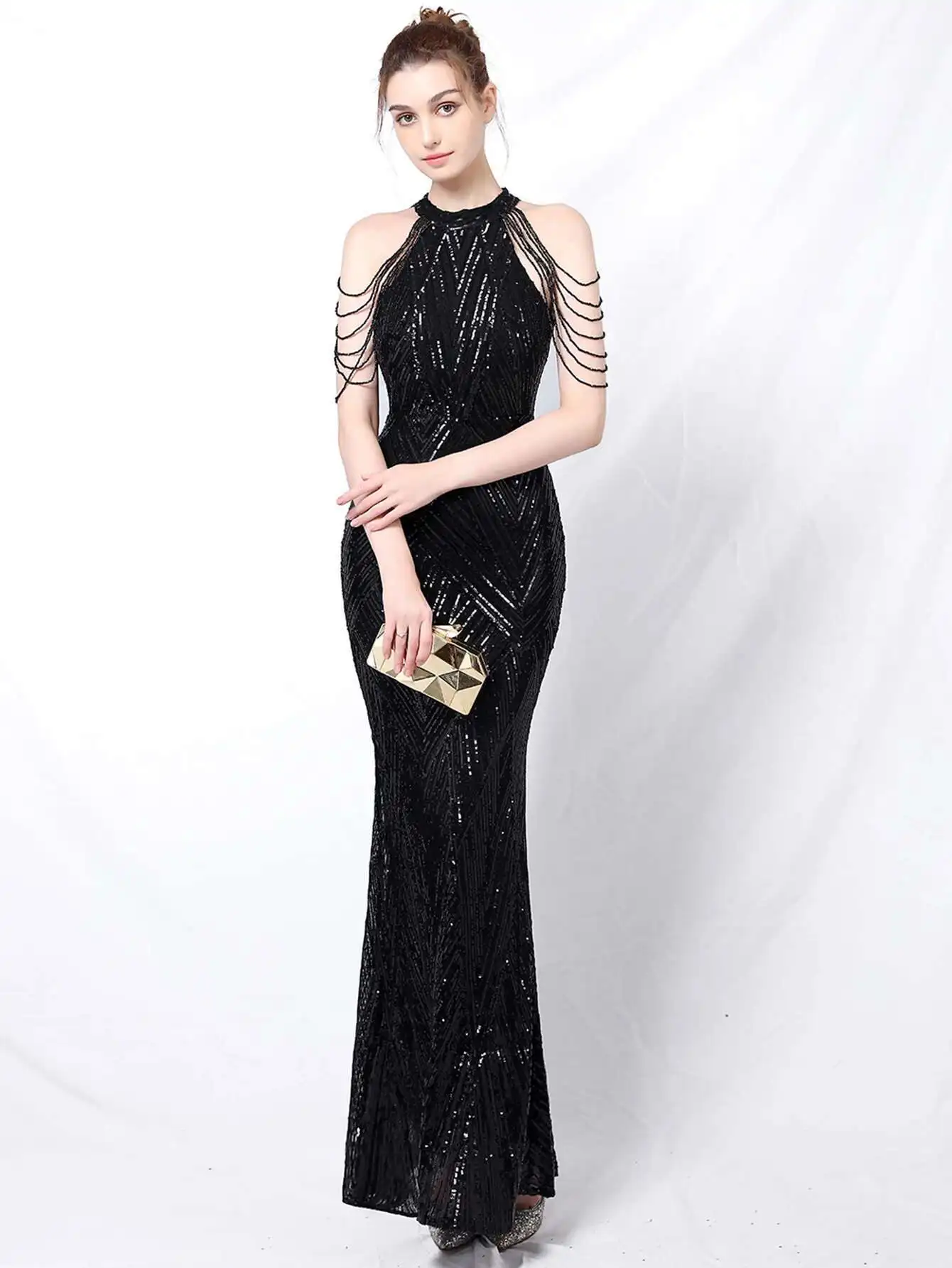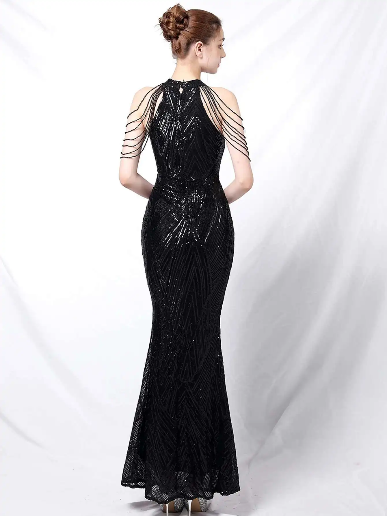 فستان سهرة ترتر أسود وأبيض