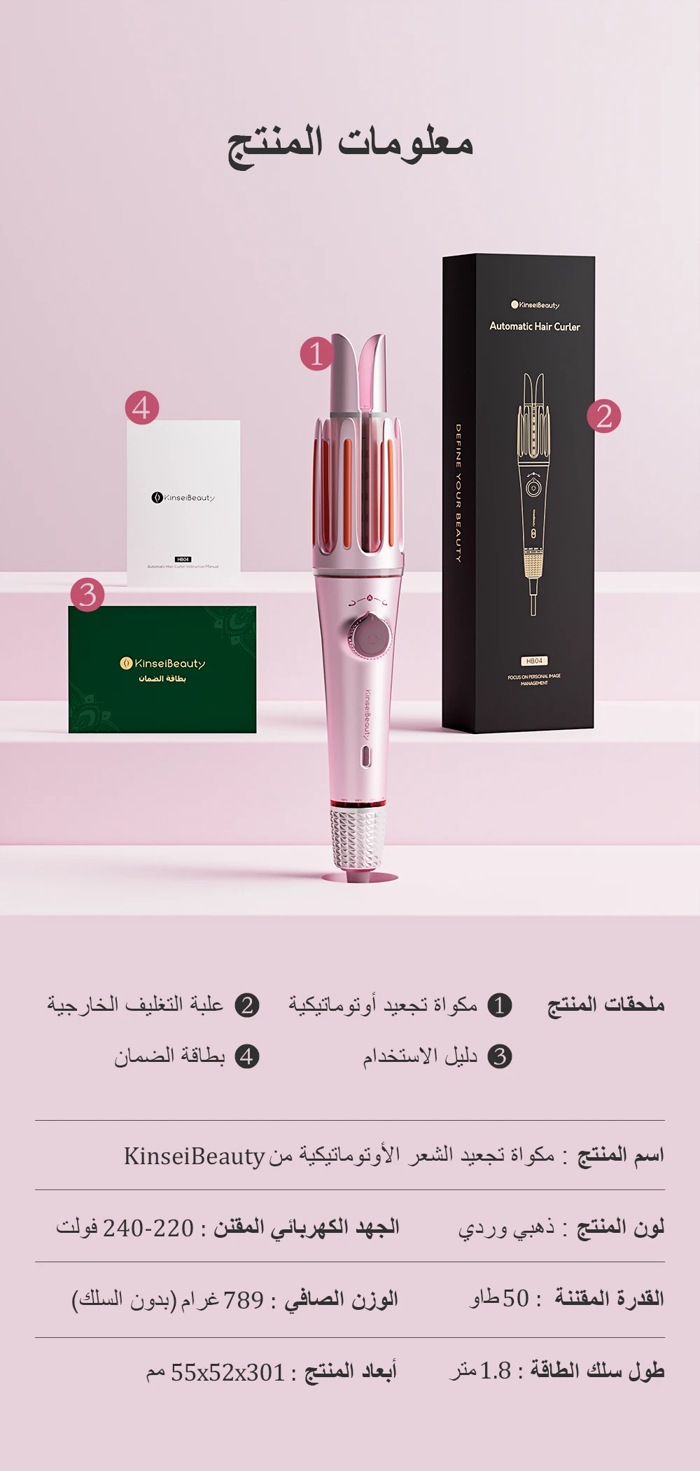 【360° سلك طاقة دوار: تم تجهيز مكواة تجعيد الشعر الأوتوماتيكية لدينا بـ 360 درجة° سلك طاقة دوار يمنحك مساحة واسعة للحركة أثناء الاستخدام، ويمنع تشابك السلك لتسهيل التخزين.