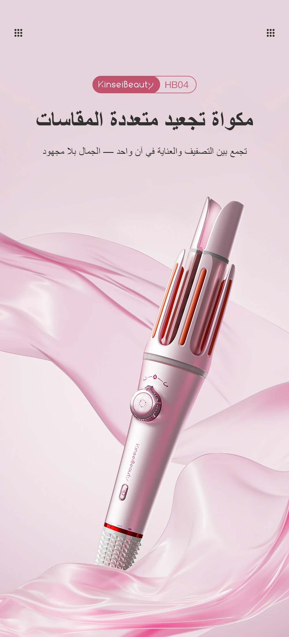 ① النسخة الطبيعية والمسترخية (3 مخالب): تعادل تقريبًا مكواة تجعيد بحجم 36 ملم، مما يخلق تجعيدًا أكبر قليلاً، طبيعيًا ومريحًا يشبه السحاب.