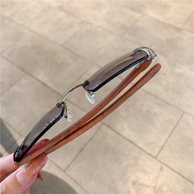 - KAMMPT بدون شفة النظارات الشمسية للرجال النساء نمط خشبي العلامة التجارية الفاخرة الرجعية نظارات شمسية ظلال الموضة UV400 السفر في الهواء الطلق