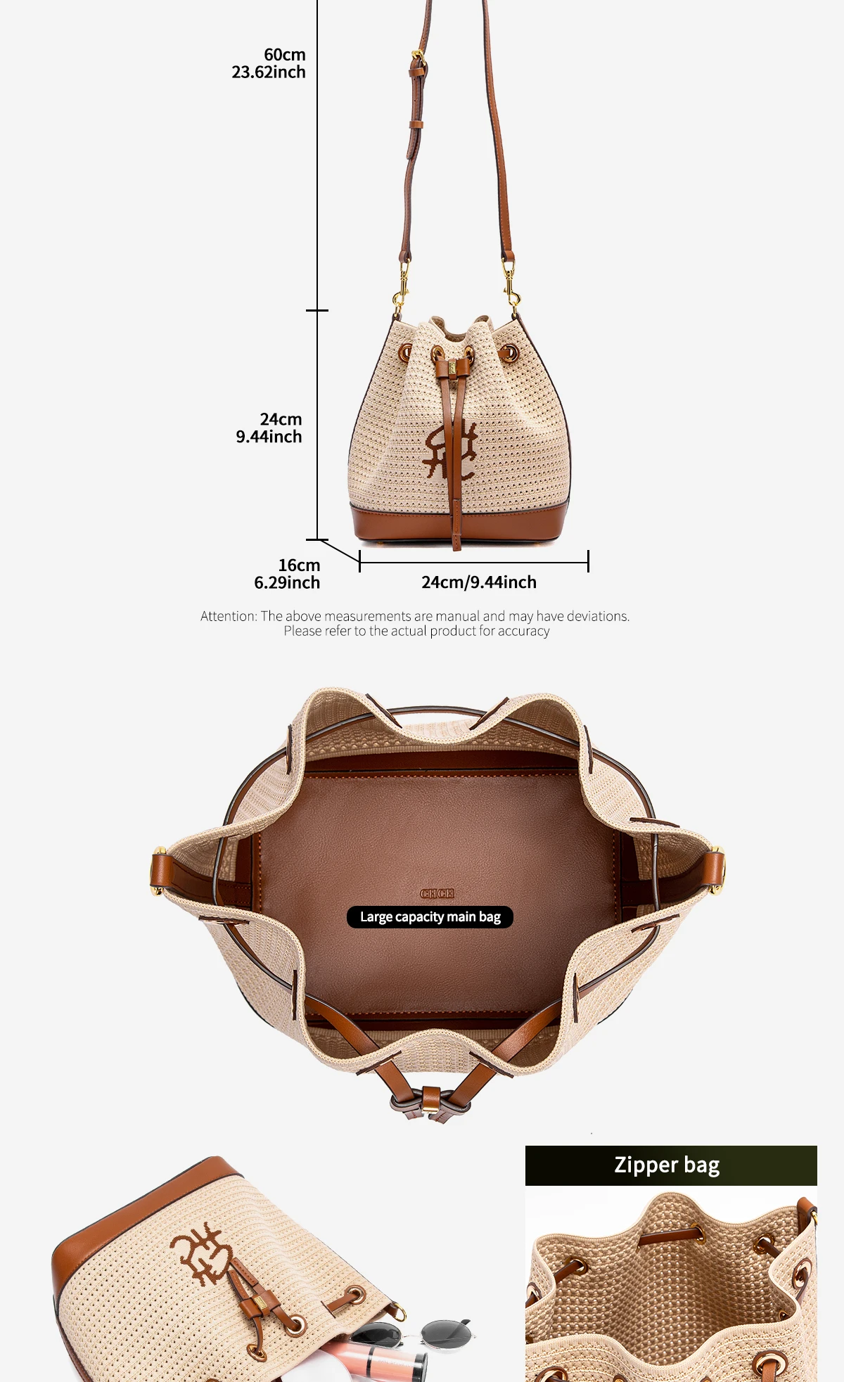 - حقيبة دلو نسائية من CHCH، حقيبة يد بتصميم ربيعي جديد من القماش، حقيبة كتف نسائية على طراز العطلة