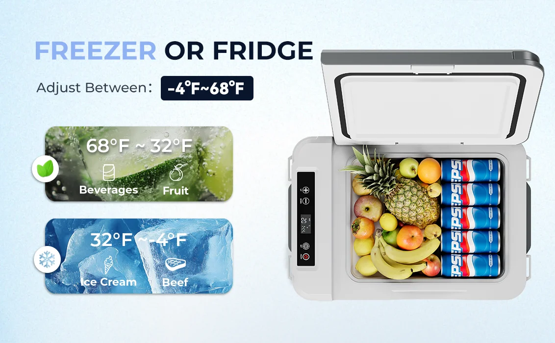 تتميز هذه الثلاجة المحمولة بسعة 10/15 لتر، مما يجعلها مثالية لتخزين الطعام والمشروبات أثناء السفر، مع ضمان بقاء الأطعمة والمشروبات طازجة وباردة.