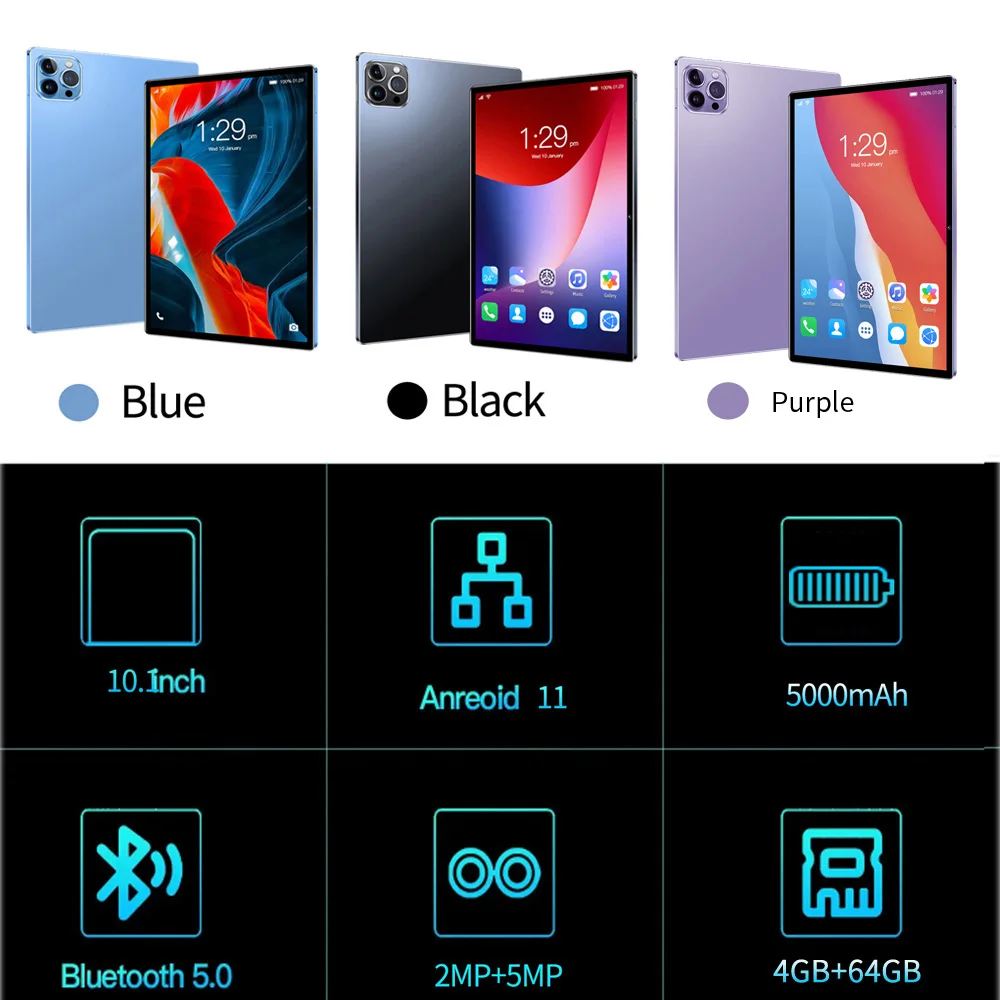 جهاز لوحي أندرويد مع ثماني النواة ، كاميرات مزدوجة ، سيم مزدوج ، ذاكرة رام 4 جيجابايت ، ذاكرة 64 جيجابايت ، بطارية ، اتصال ، الأفضل مبيعًا ،