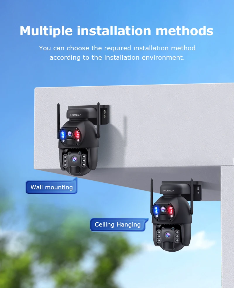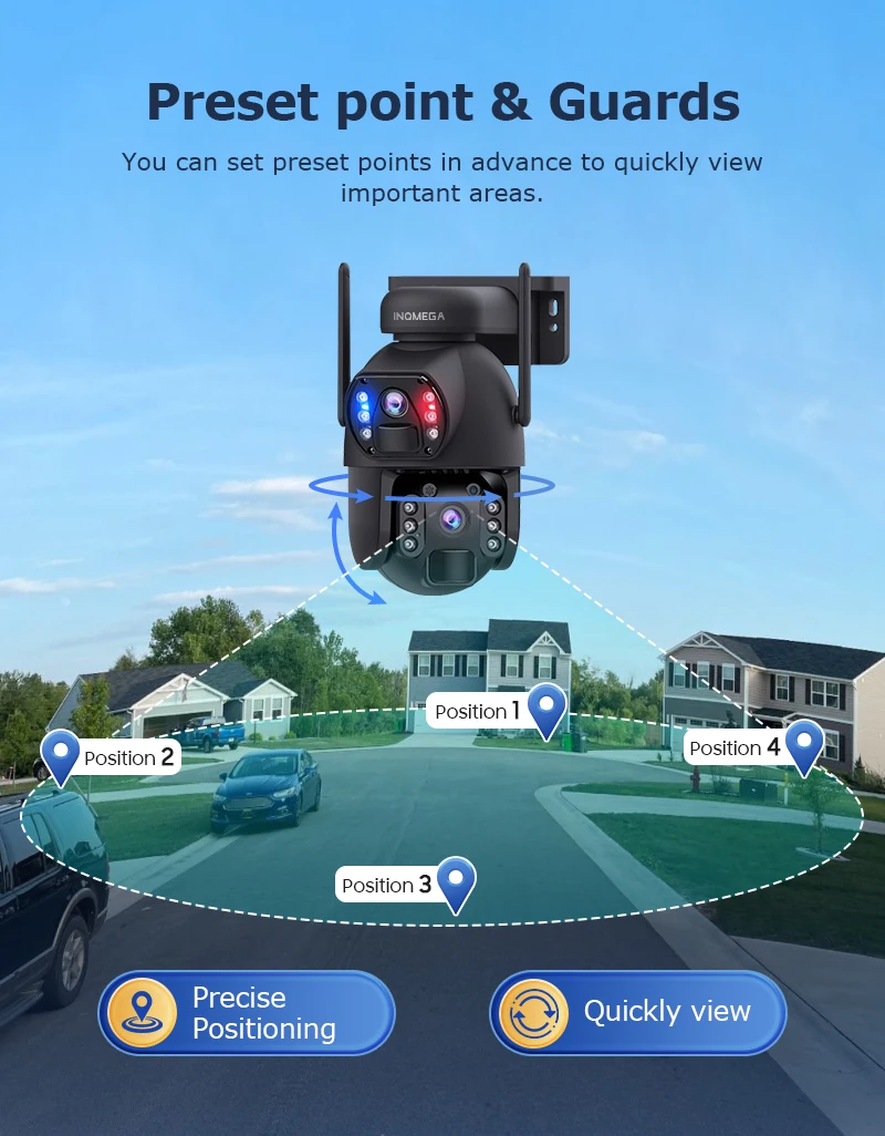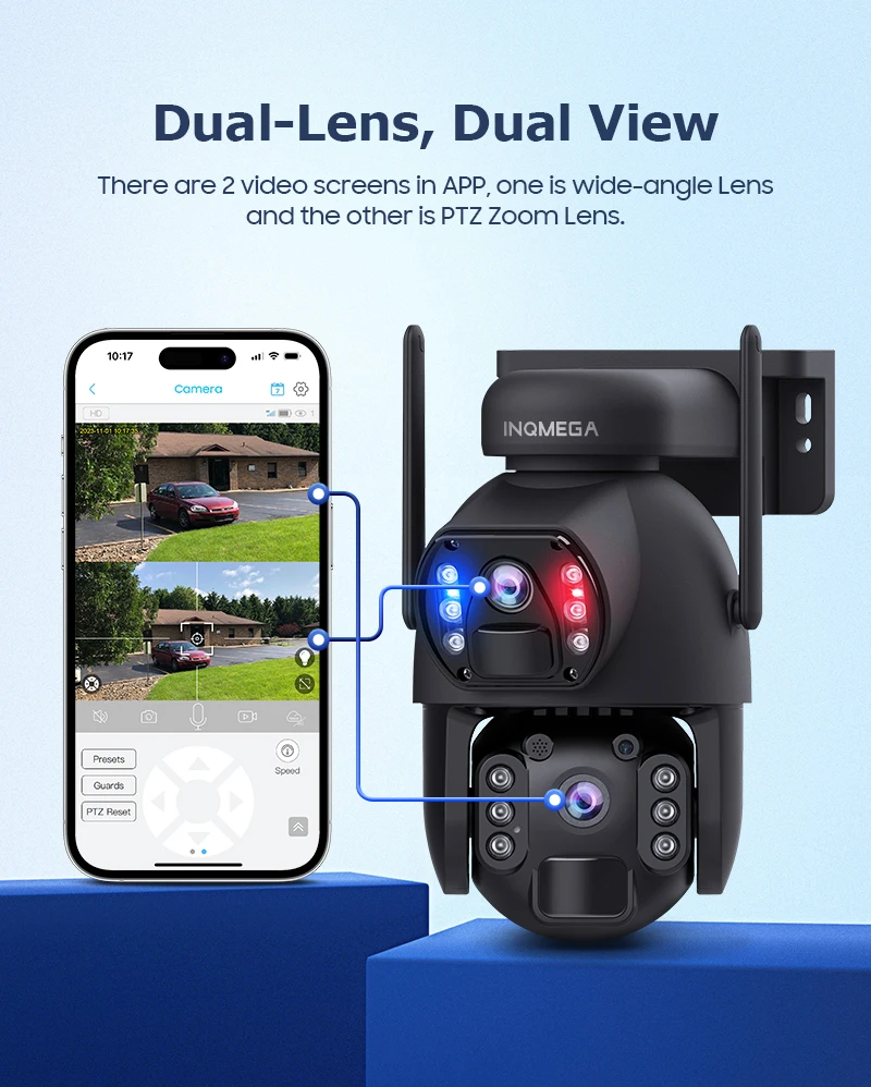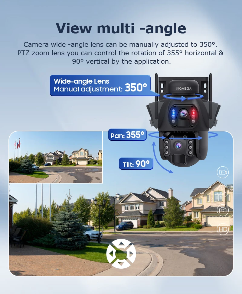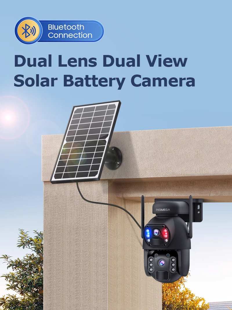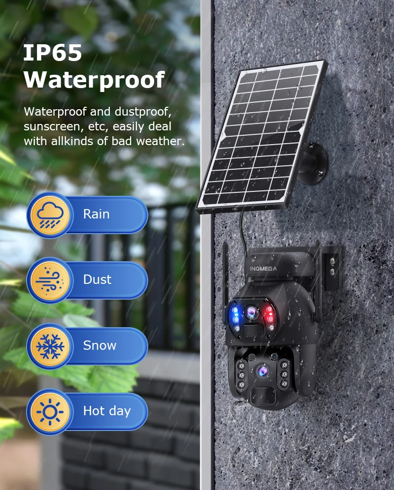 كاميرا أمان لاسلكية خارجية مقاومة للماء INQMEGA ، عدسة مزدوجة ، رؤية ليلية ، كاميرا PTZ ، تعمل بالطاقة الشمسية ، 8MP ، 4G