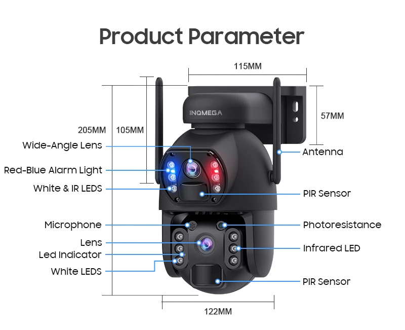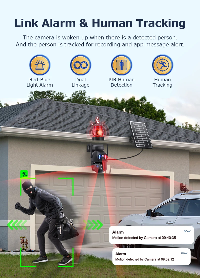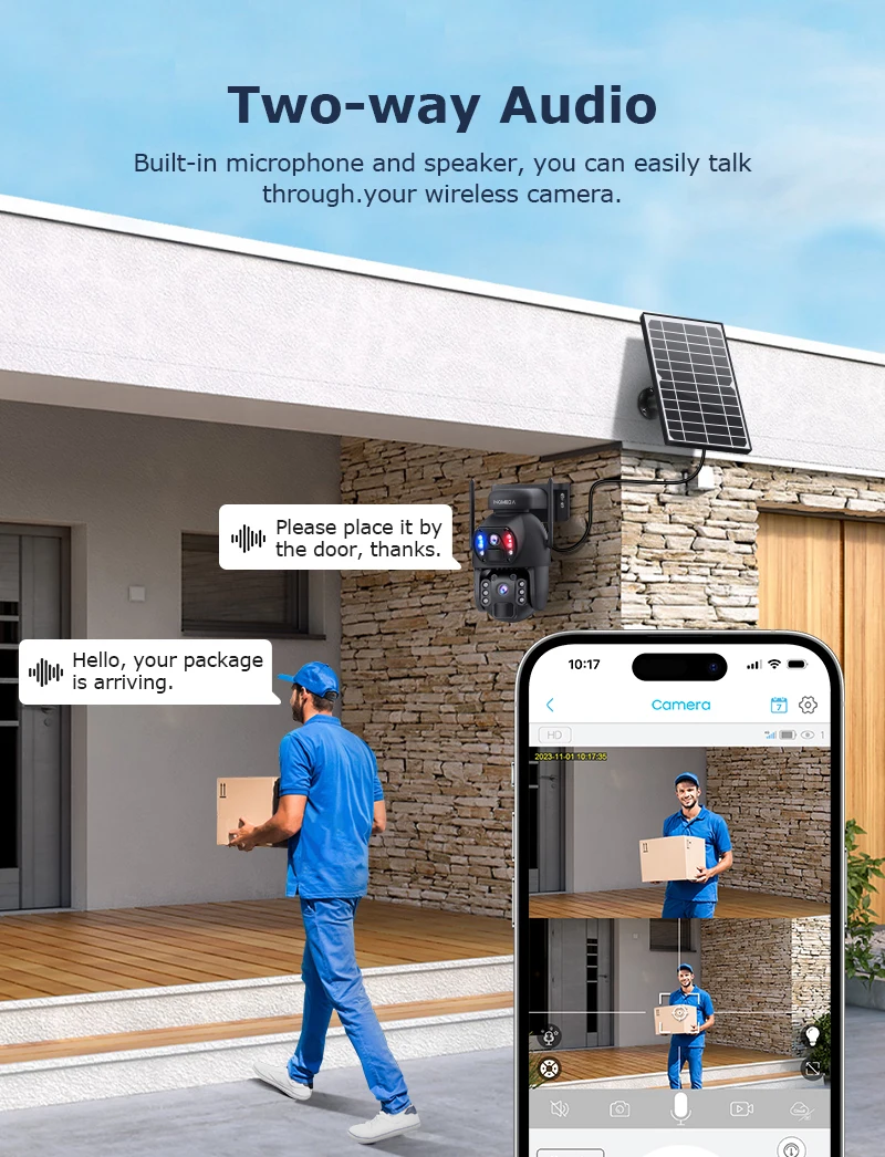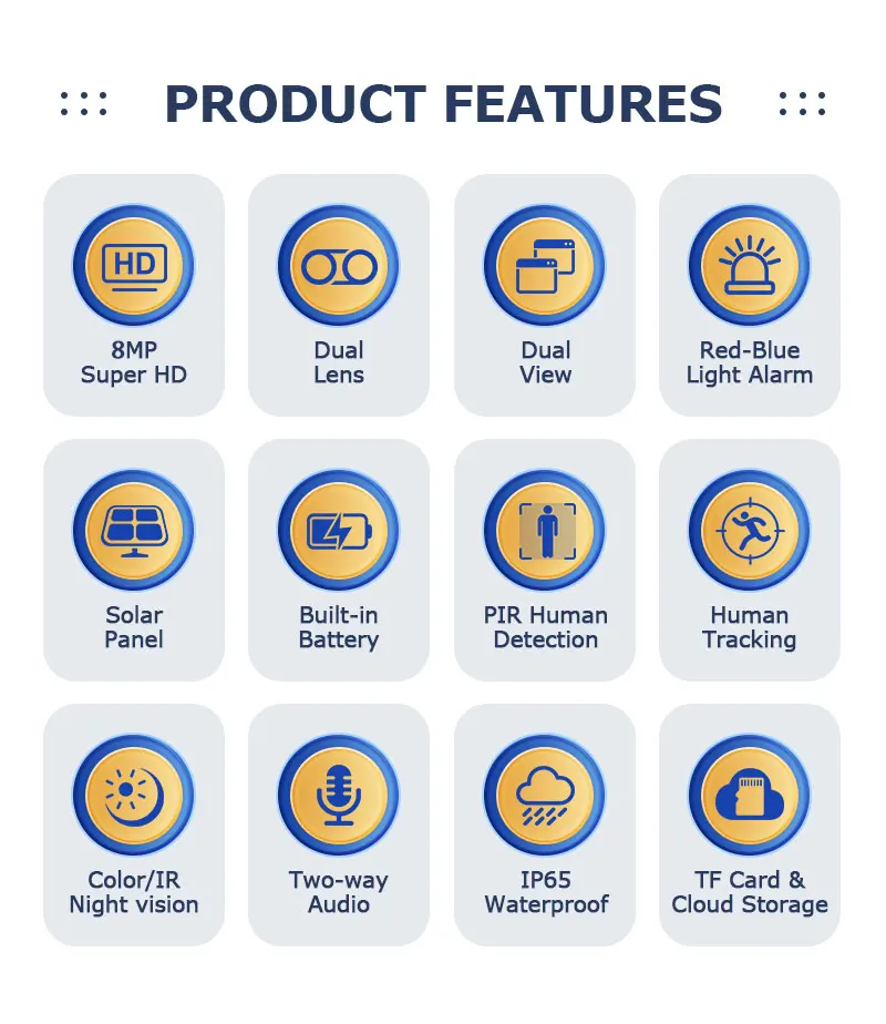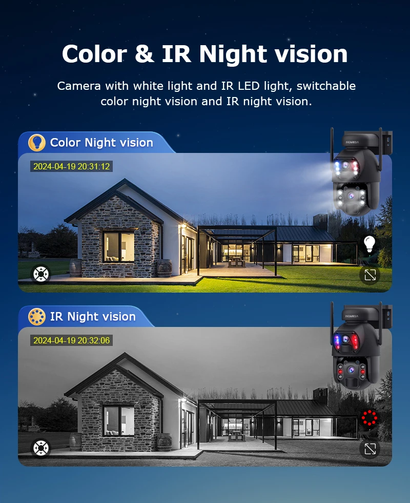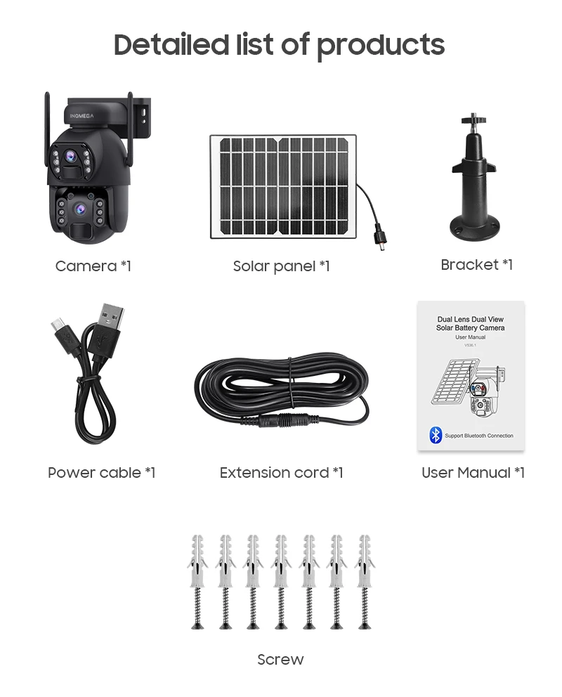 كاميرا أمان لاسلكية خارجية مقاومة للماء INQMEGA ، عدسة مزدوجة ، رؤية ليلية ، كاميرا PTZ ، تعمل بالطاقة الشمسية ، 8MP ، 4G