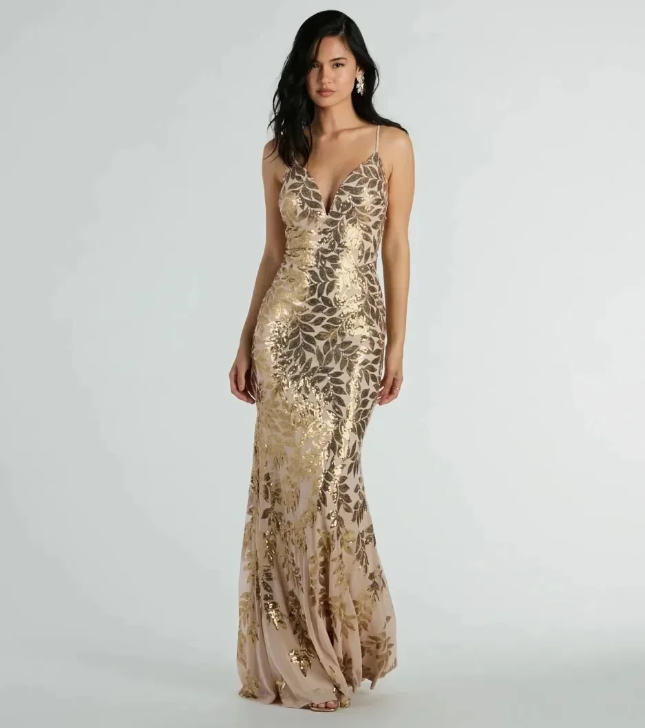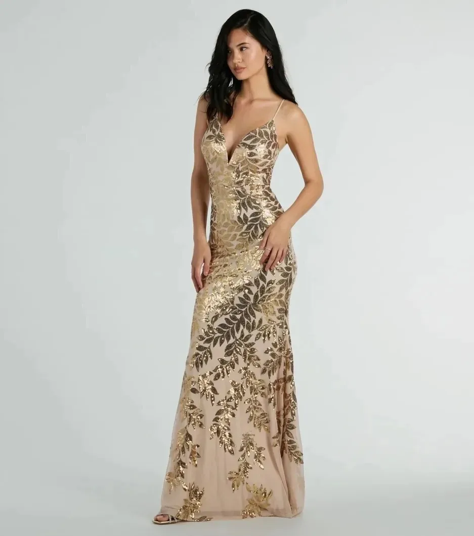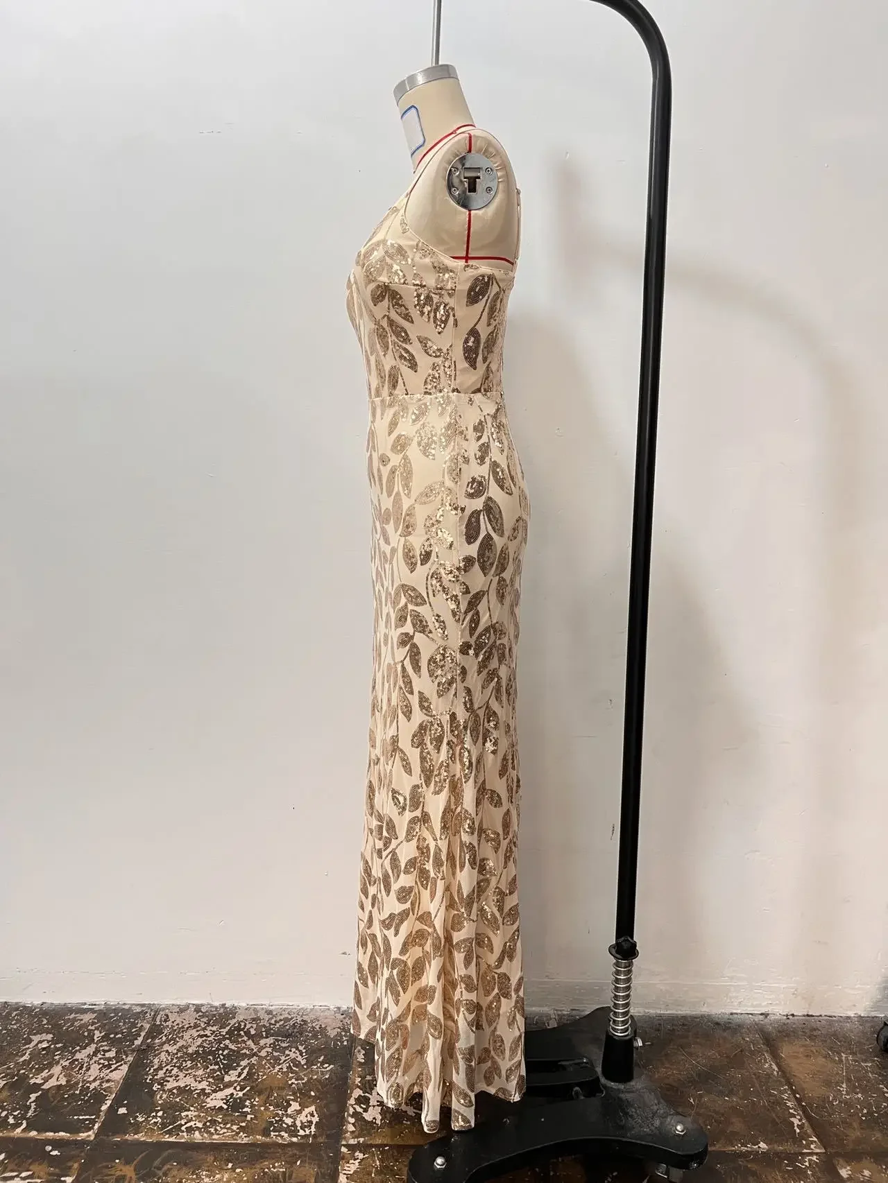 • النسيج مطرز بالترتر:يتميز هذا الفستان بنسيج مطرز بالترتر اللامع، ويبرز البريق وهو مثالي للمناسبات الخاصة أو الليالي بالخارج.