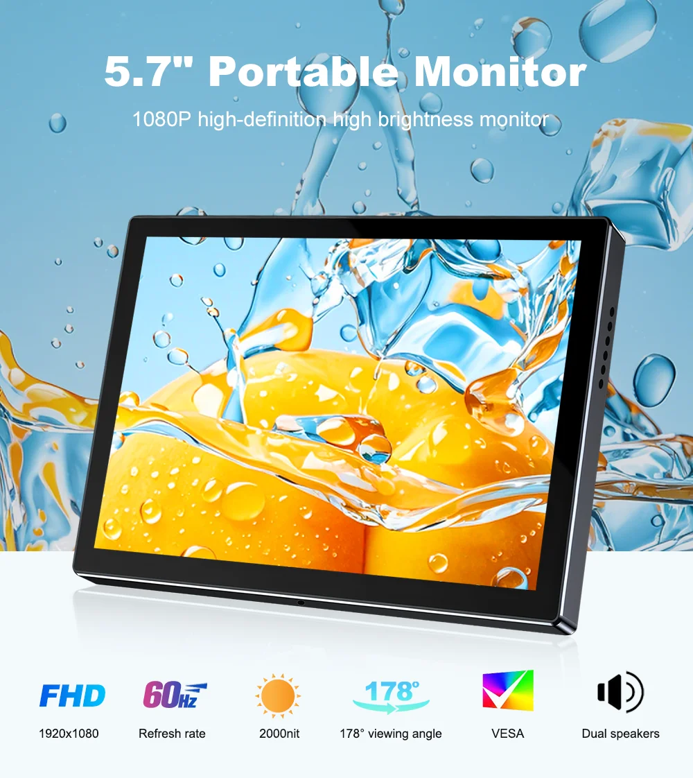 Unew Mini 5.7 بوصة شاشة محمولة 1920x1080 60 هرتز عرض Type-C USB HDMI شاشة ل CCTV سيارة دراجة نارية الكمبيوتر