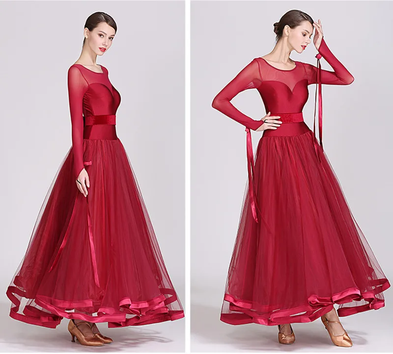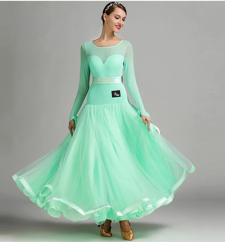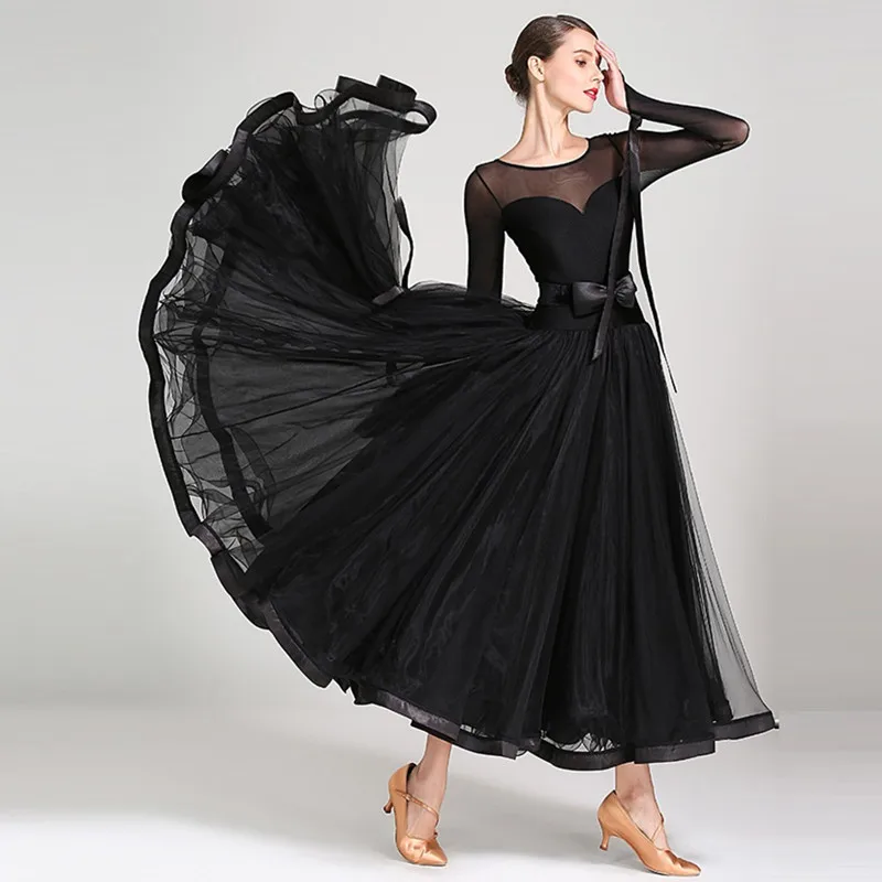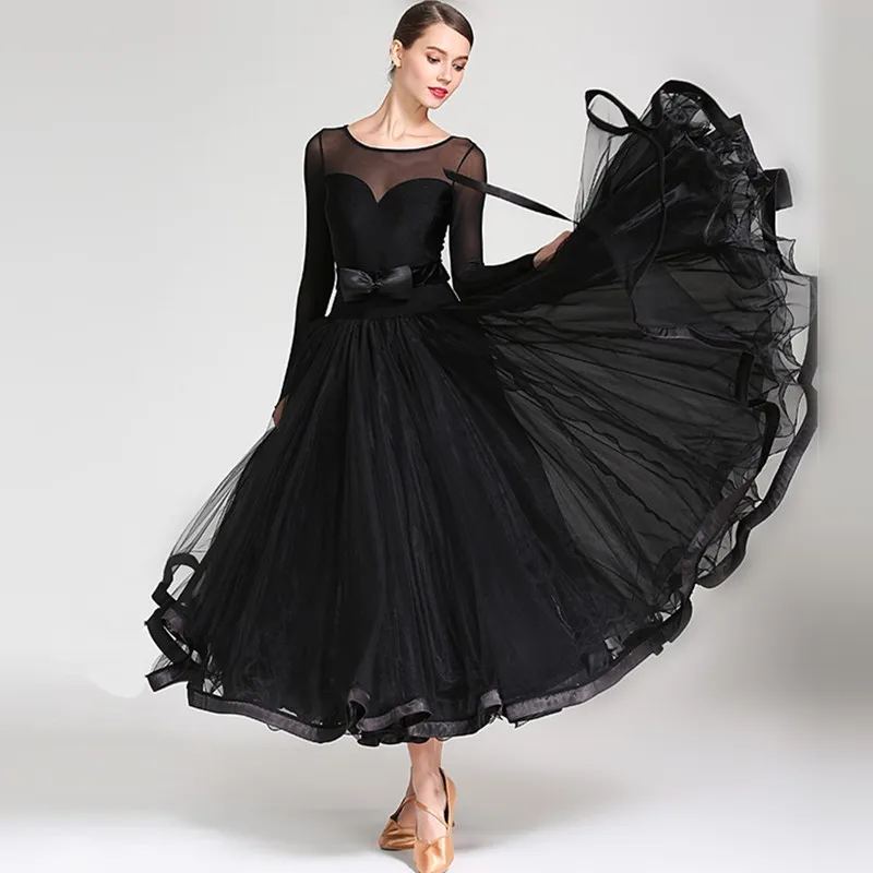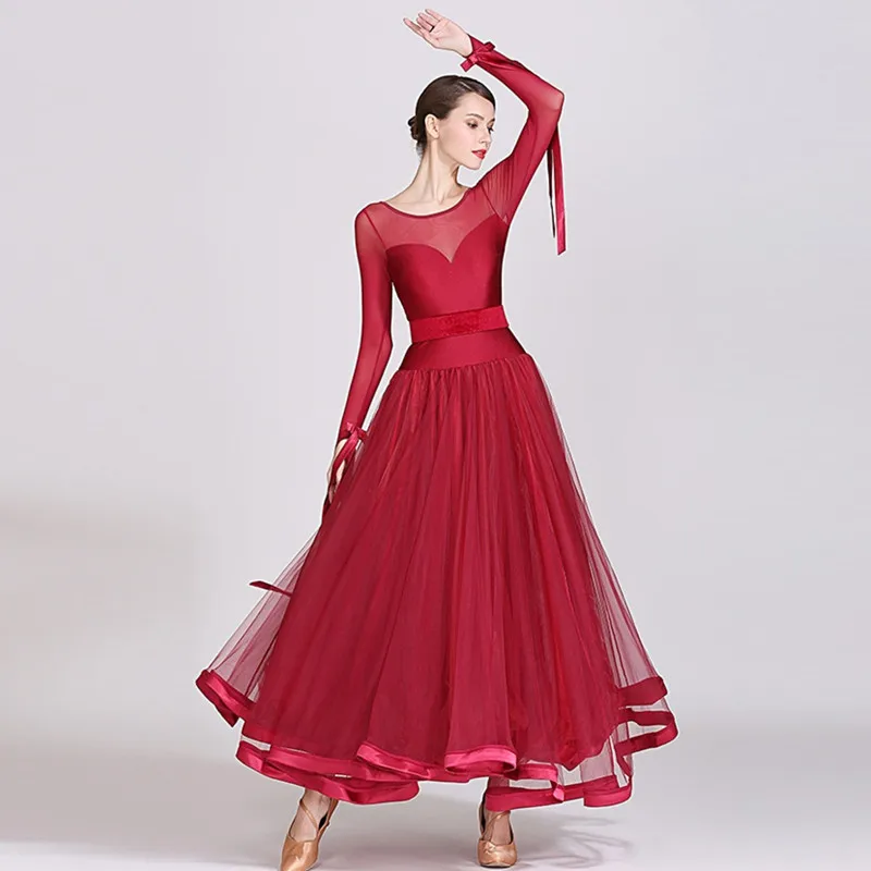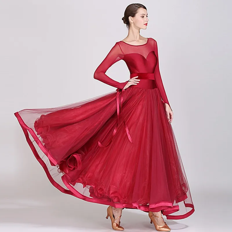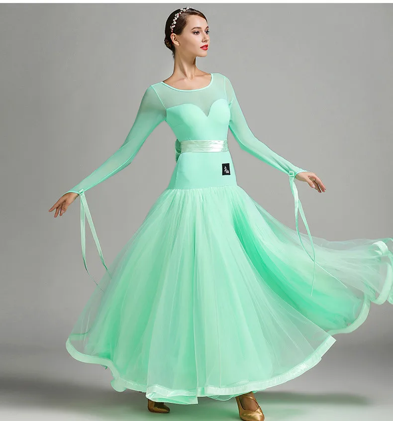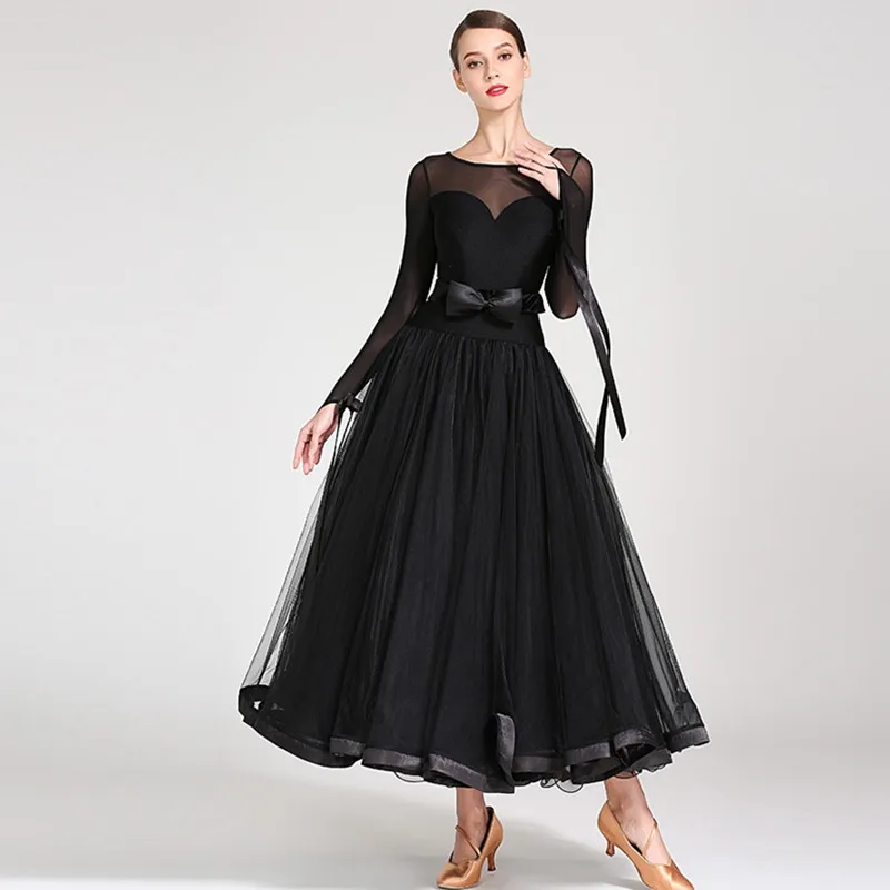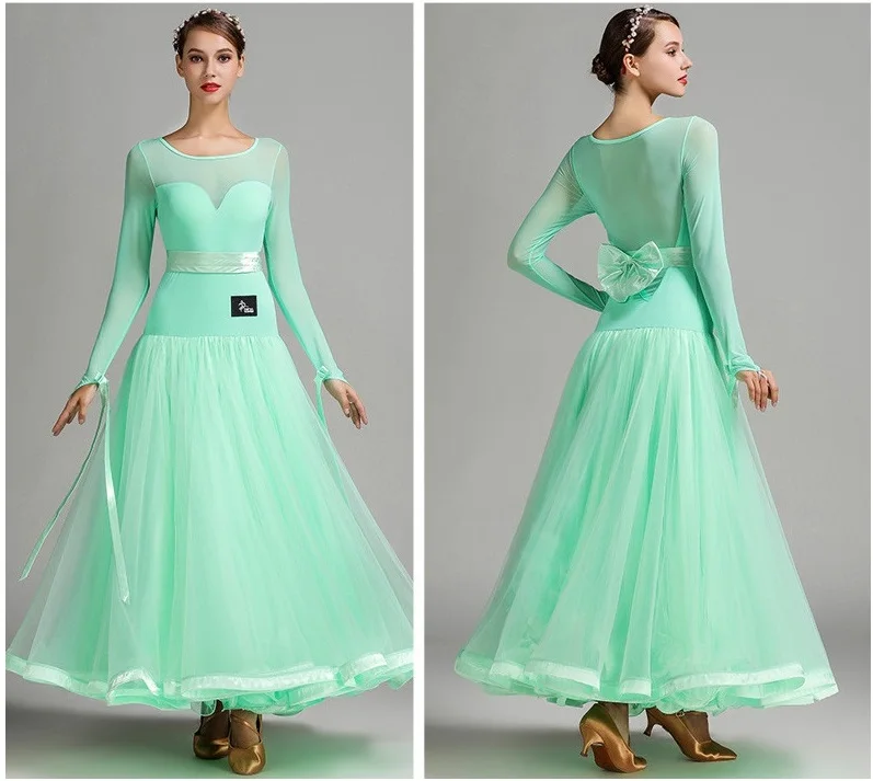 فستان قياسي لقاعة الرقص للنساء ، حزام القوس ، خيوط الطيران ، فستان الفالس ، أزياء التانجو ، ثوب قاعة الرقص ، ملابس الرقص