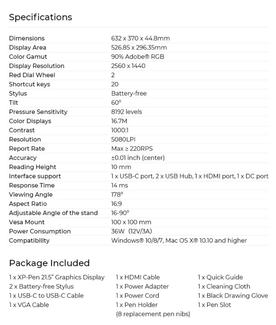 The XP-Pen Artist 22R Pro supports Windows 7 (or later), Chrome OS 88 (or later), Linux (Detailed versions), Mac OS X® 10.10 and higher. Compatible with popular digital art software such as Adobe® Photoshop®, Illustrator®, SAI®, CDR®, GIMP®, Krita®, Medibang®, Fire Alpaca®, Blender® 3D and more.