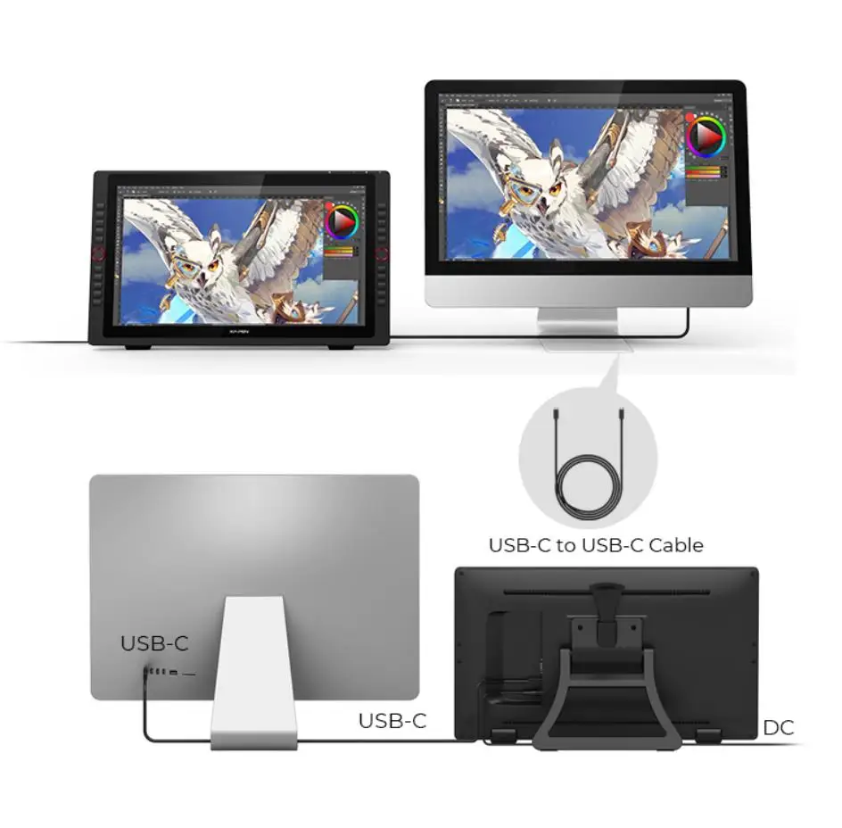 The Artist 22R Pro is the first graphics display that supports a USB-C to USB-C connection, letting you directly connect your iMac/Mac Book Pro and other Windows computers that support USB-C input to the 22R Pro without using a USB-C to HDMI &USB adapter
