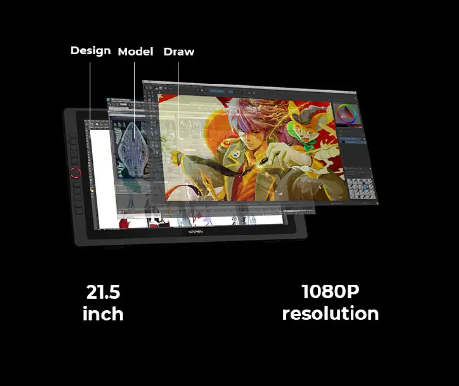 The XP-Pen Artist 22R Pro comes with a strikingly large 21.5-inch display and features 1080p resolution, allowing you draw, design, model and create directly onto the 22R Pro's surface, letting you unleash new creative possibilities.