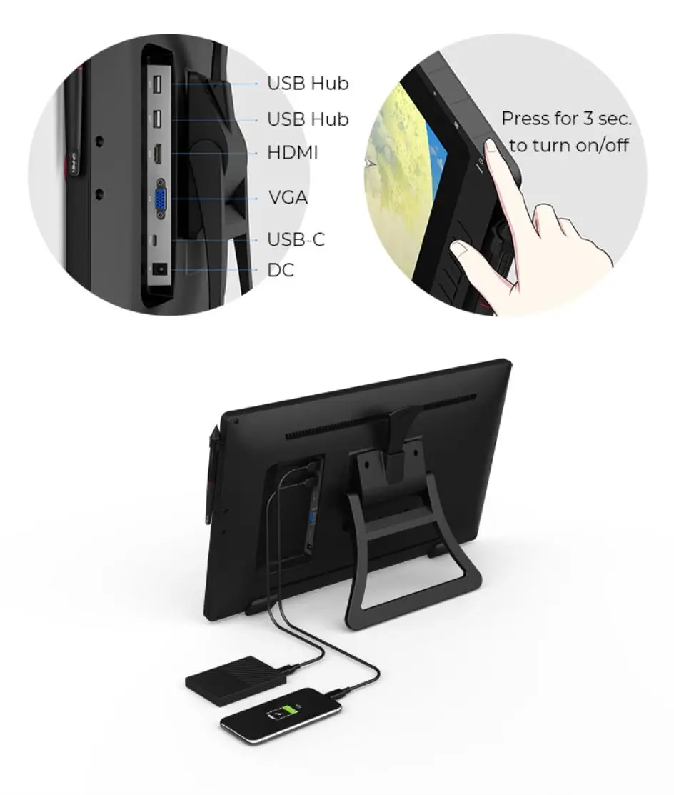 The Artist 22R Pro comes equipped with the USB Hub that can be used to connect your mouse or other devices. And the touch sensitive keys are specially designed to avoid sticking the way mechanical keys often do.