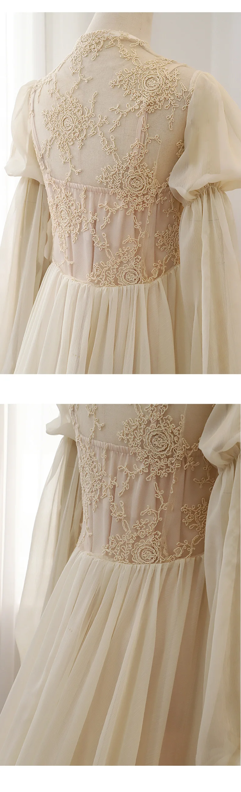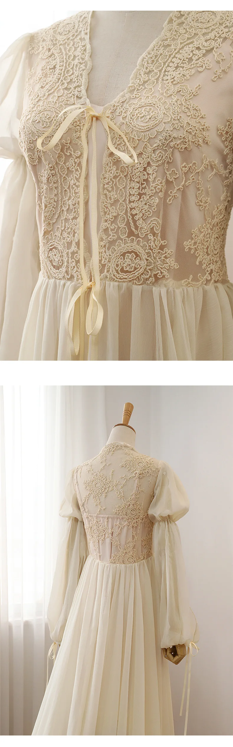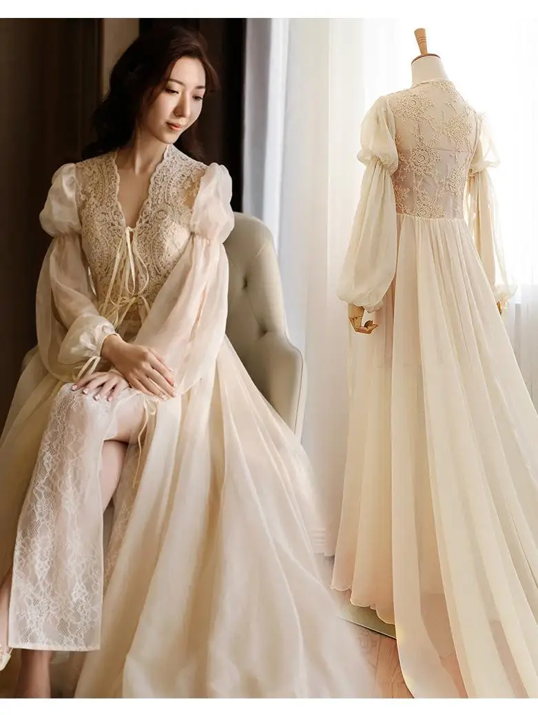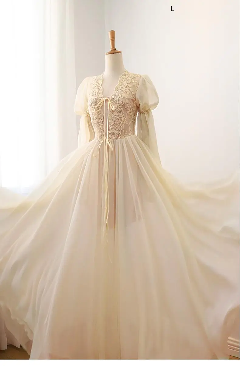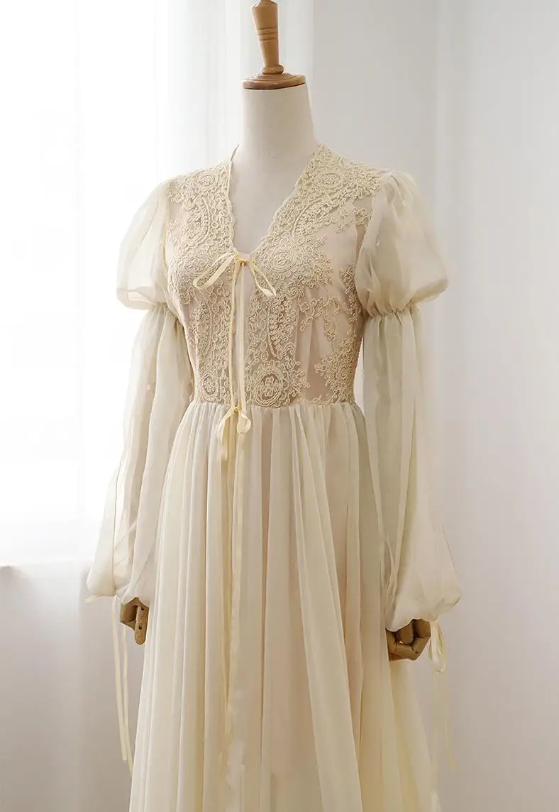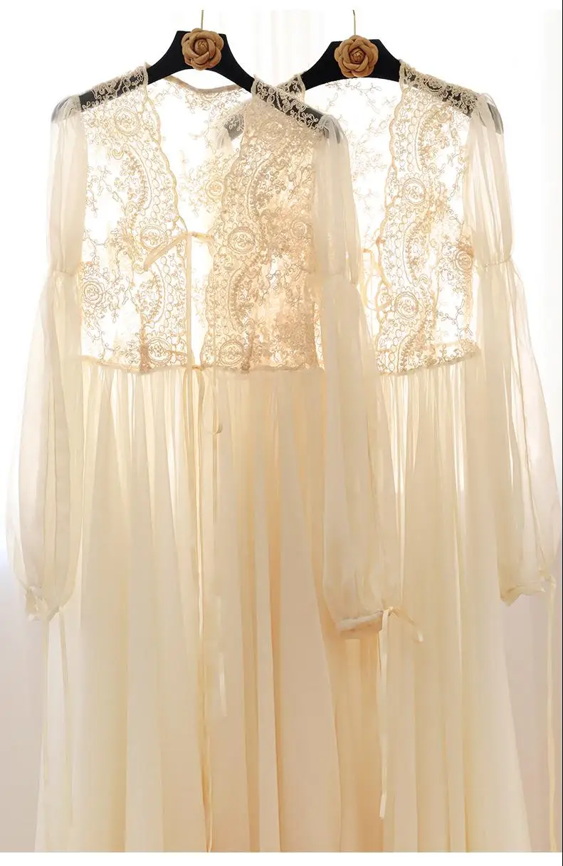 رداء نوم نسائي دانتيل كم طويل