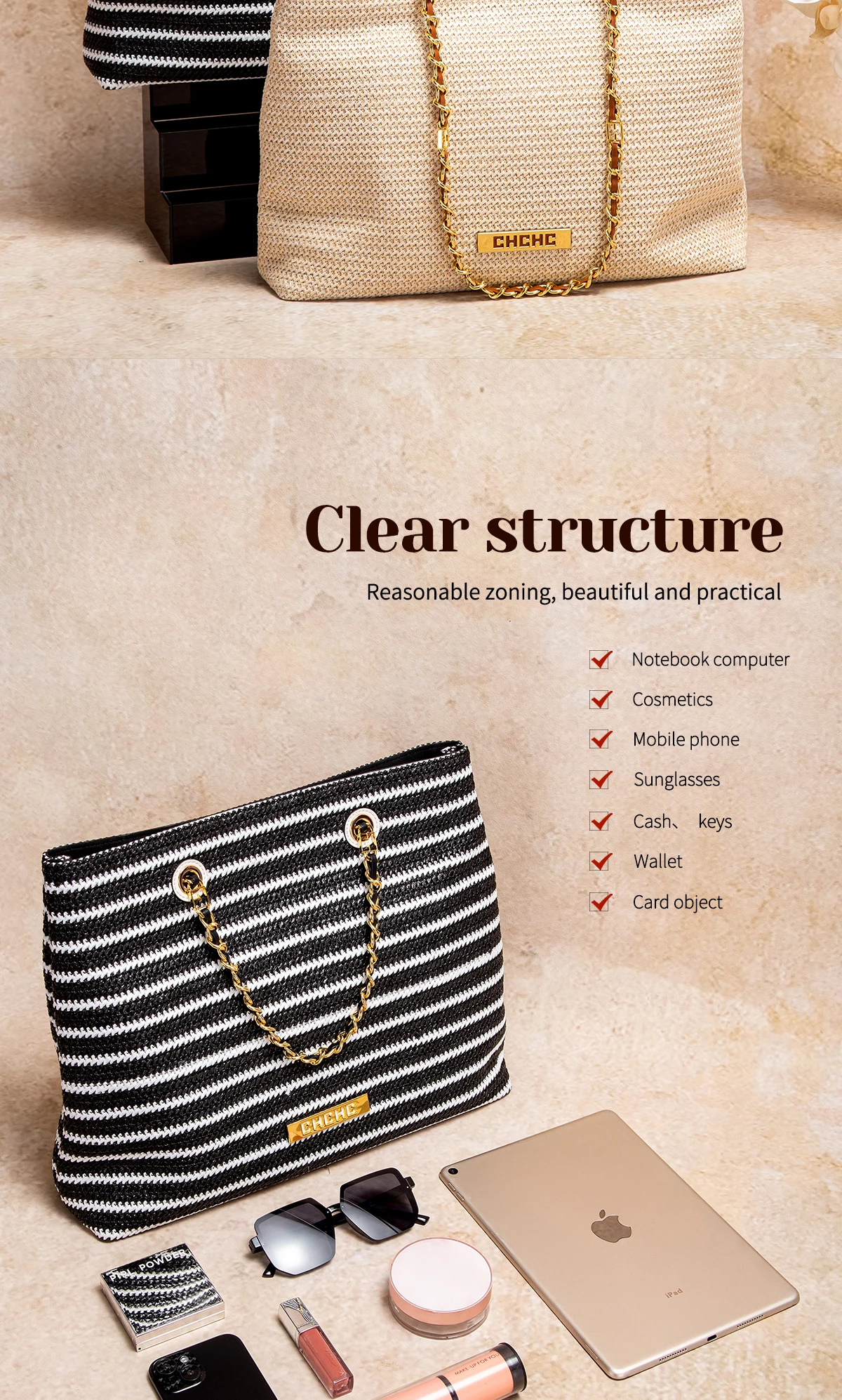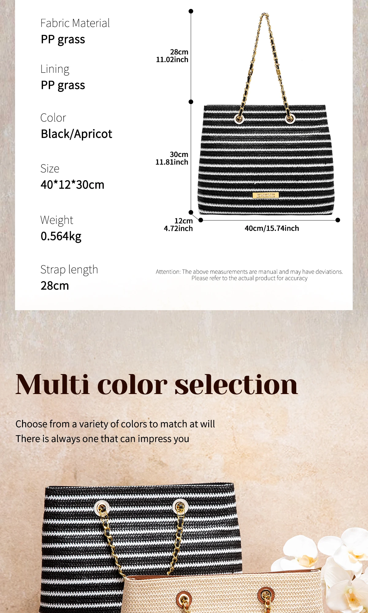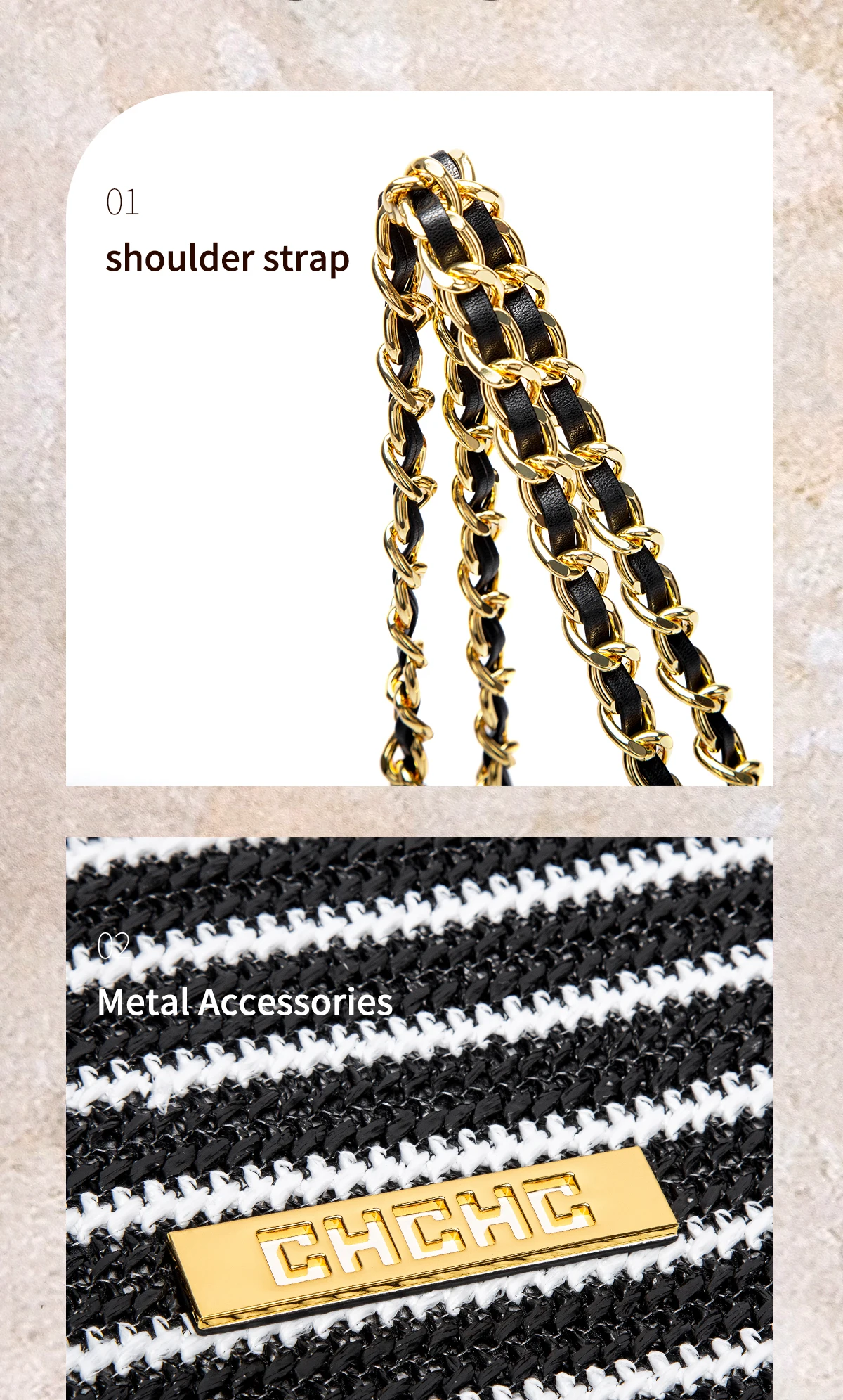 الموضة الكلاسيكية الرجعية شريط المرأة الجديدة سلسلة حقيبة سعة كبيرة مادة البولي بروبيلين حقيبة كتف المرأة