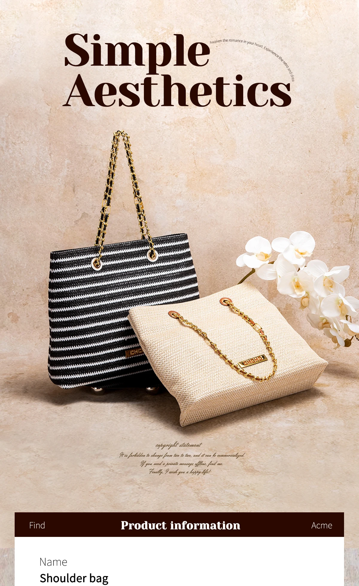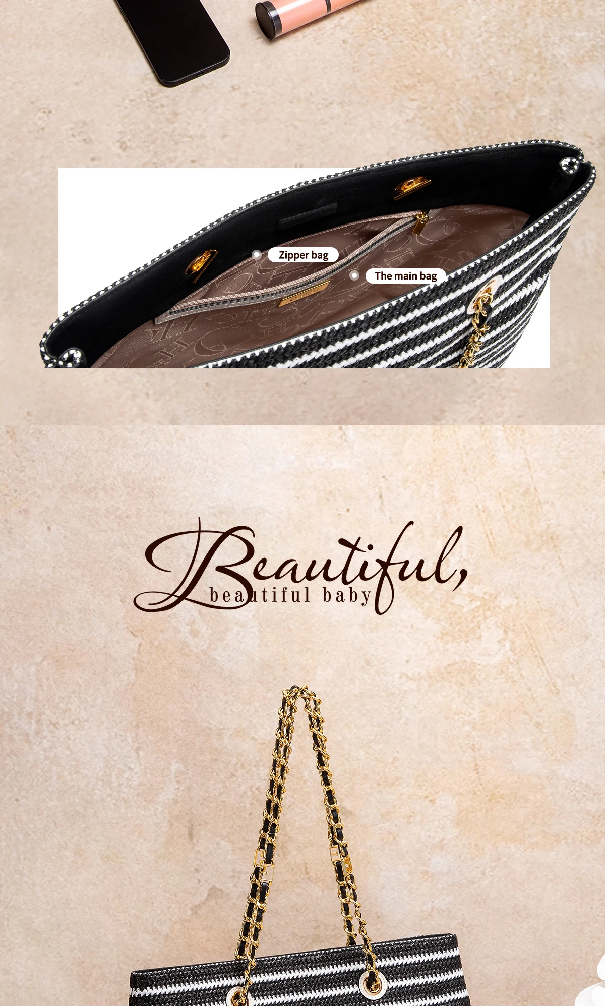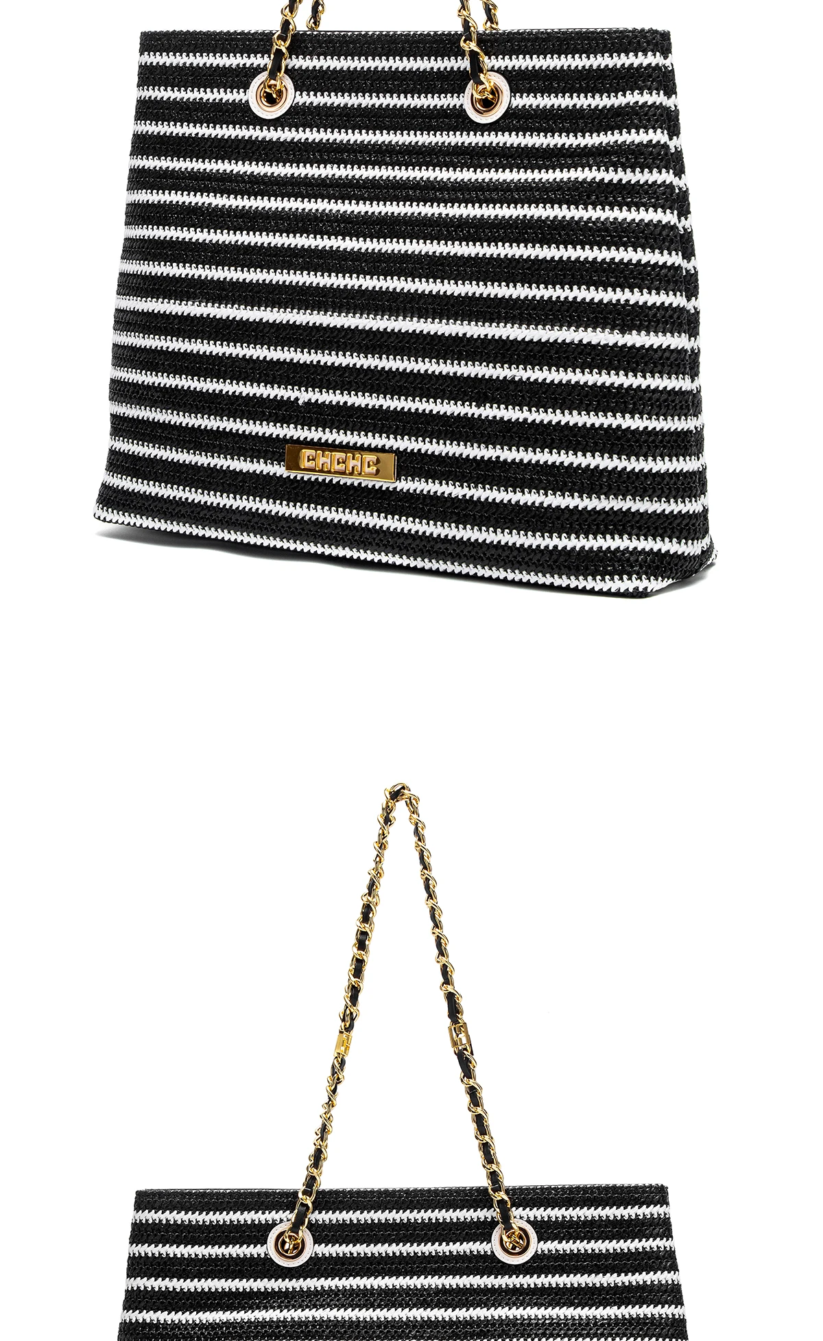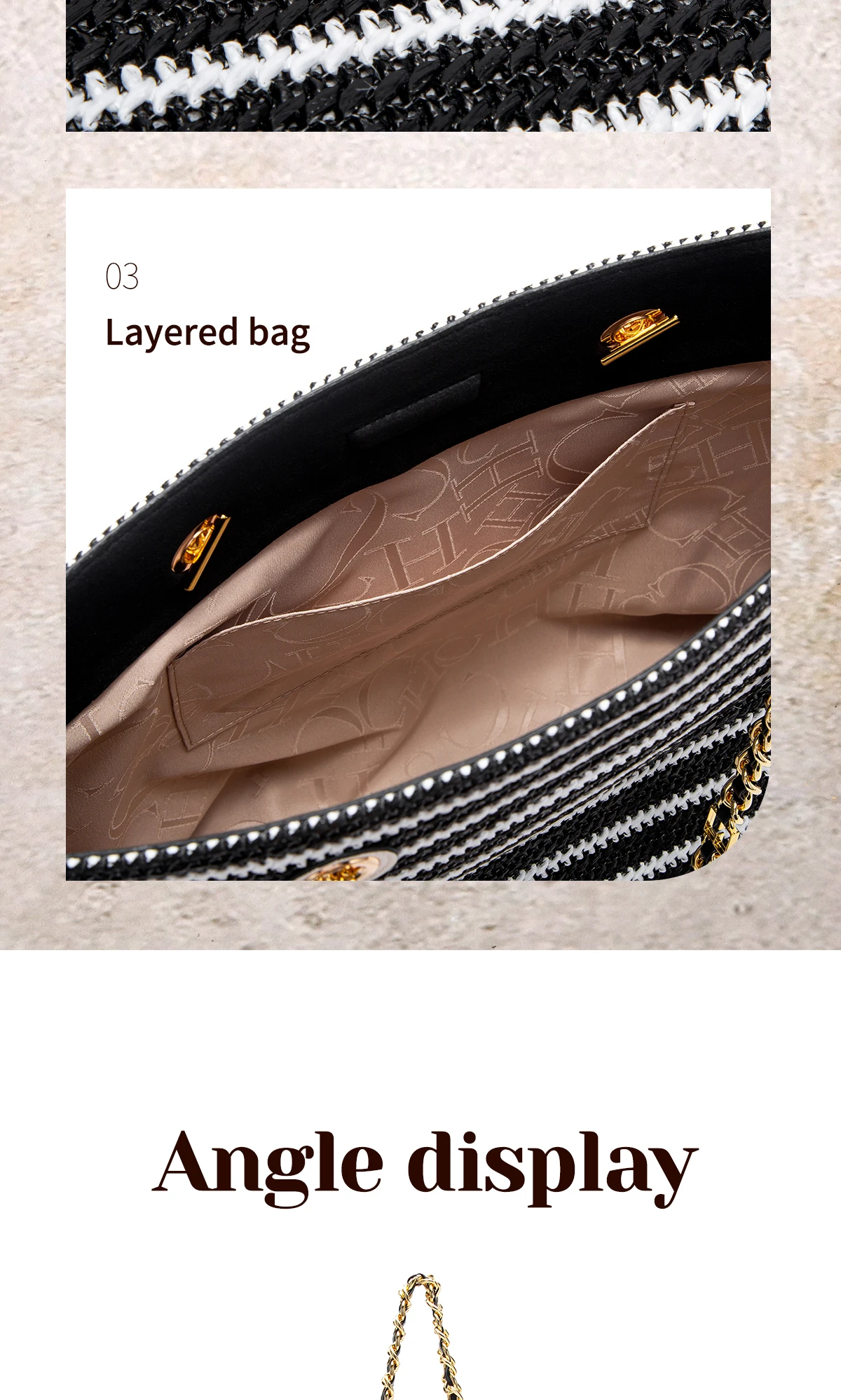 الموضة الكلاسيكية الرجعية شريط المرأة الجديدة سلسلة حقيبة سعة كبيرة مادة البولي بروبيلين حقيبة كتف المرأة