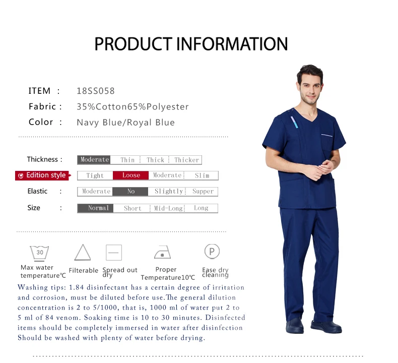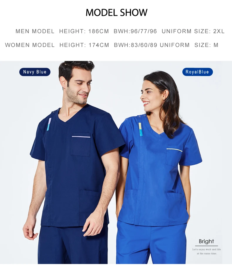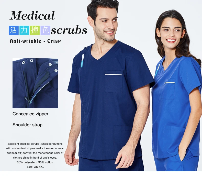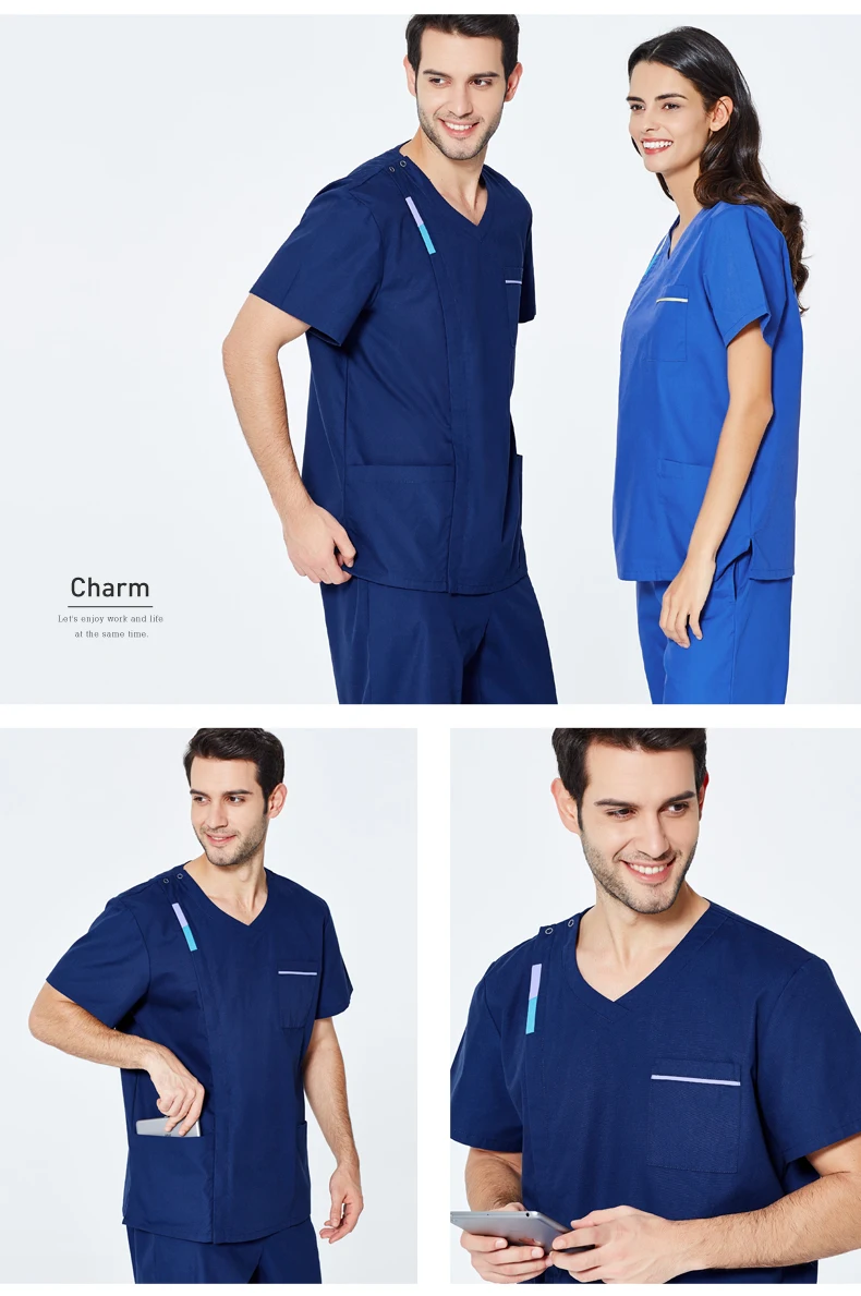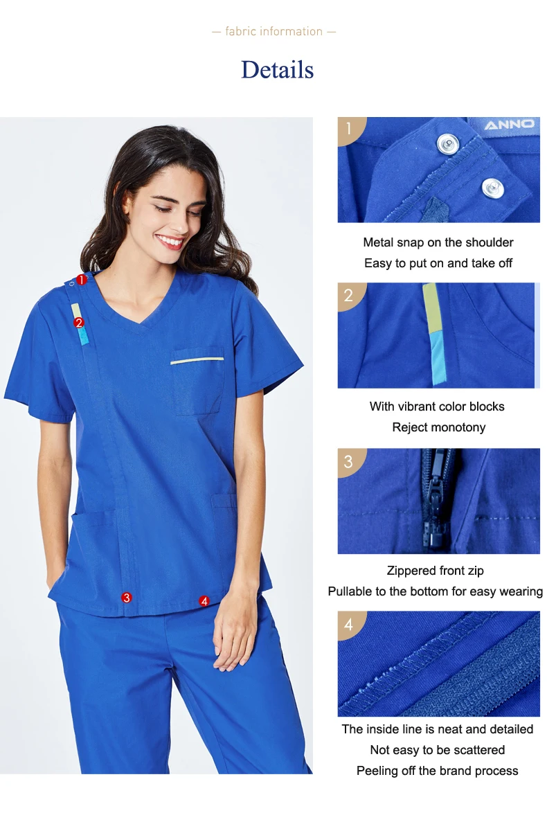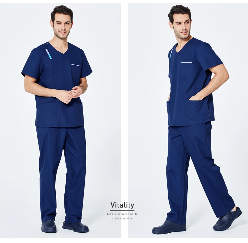ANNO-طقم تمريض للرجال والنساء ، زي تمريض ، ملابس زرقاء ، زي موحد للعيادة