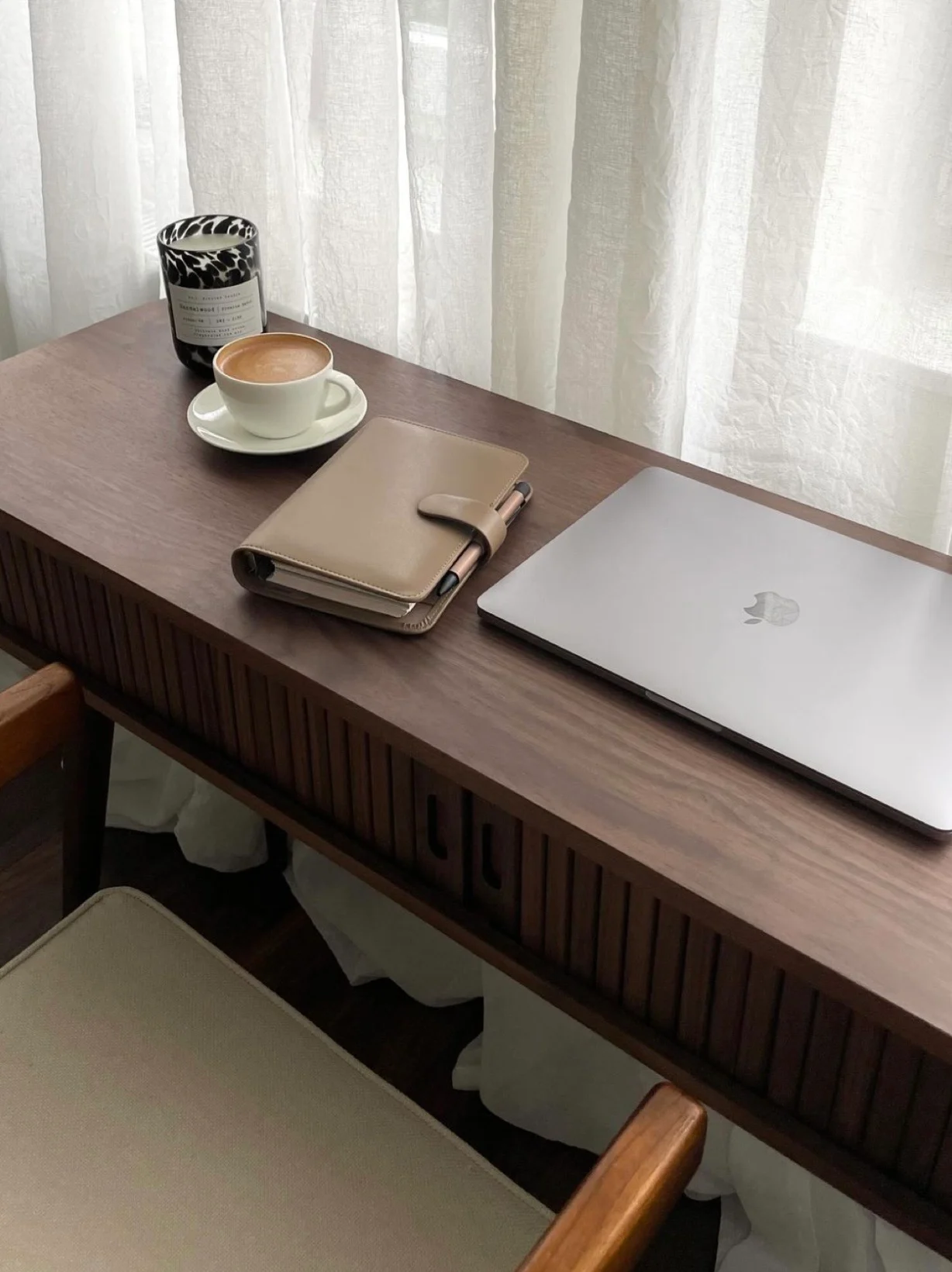 جميع أجزاء المكتب بدرجة لون واحدة،تمنح مظهرًا متناسقًا