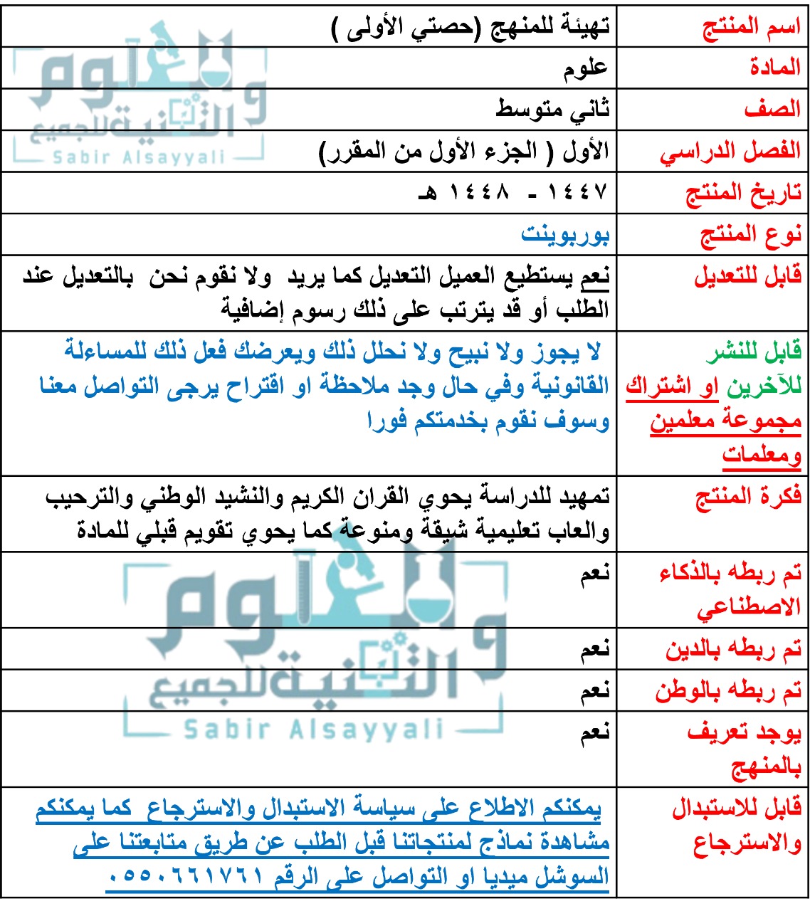 بكج شامل علوم ثاني متوسط الجزء الأول من المقرر