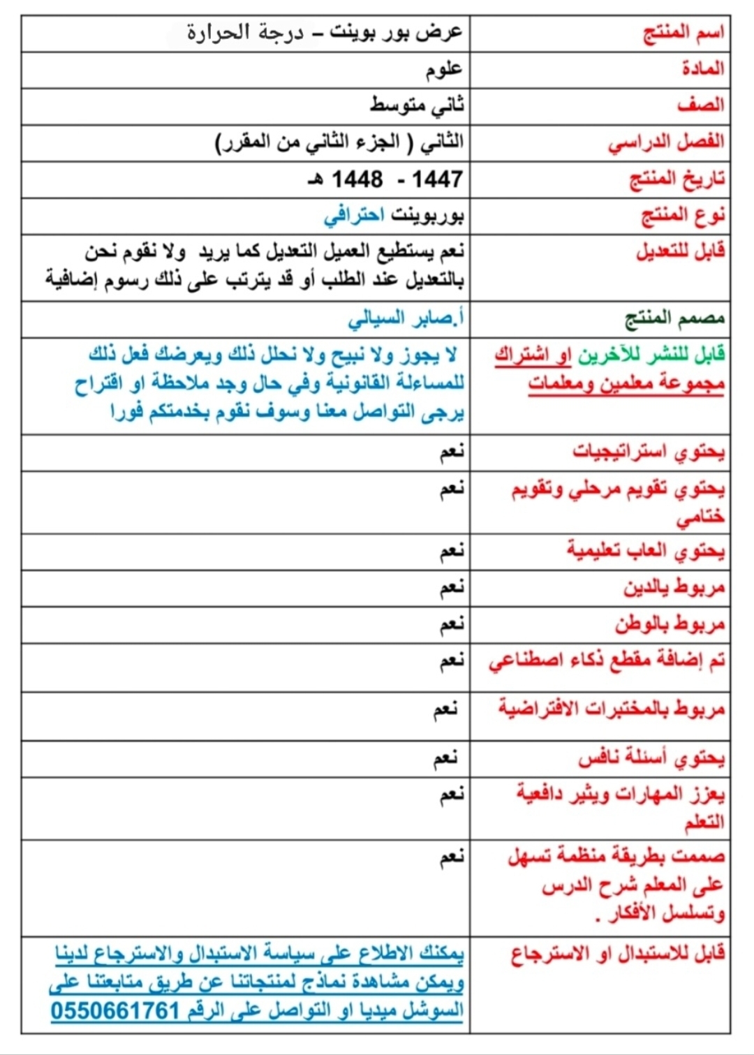 · كما تم إعداد المنتج بأسلوب تعليمي مبسط يراعي الفروق الفردية بين الطلاب والطلبات.