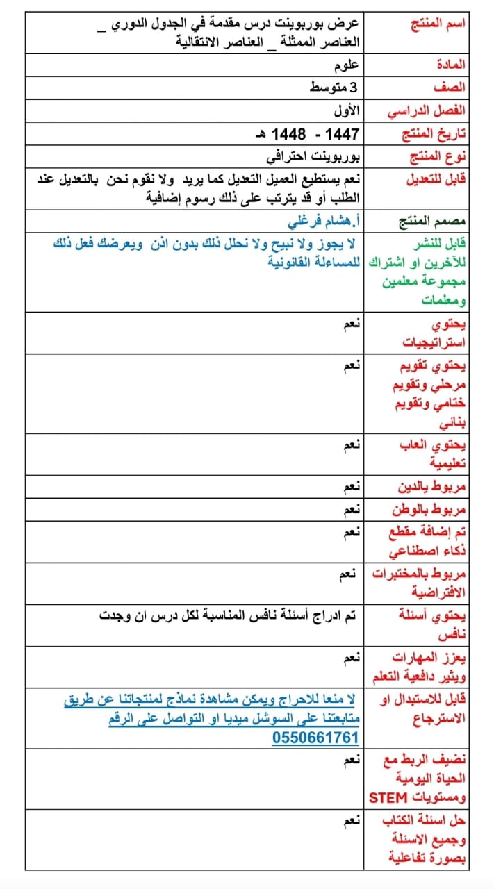 عرض بوربوينت لفصل الجدول الدوري علوم ثالث متوسط الجزء الأول من المقرر