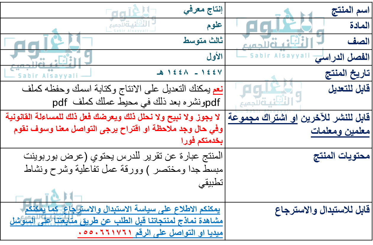انتاج معرفي اسلوب العلم علوم ثالث متوسط الجزء الأول من المقرر