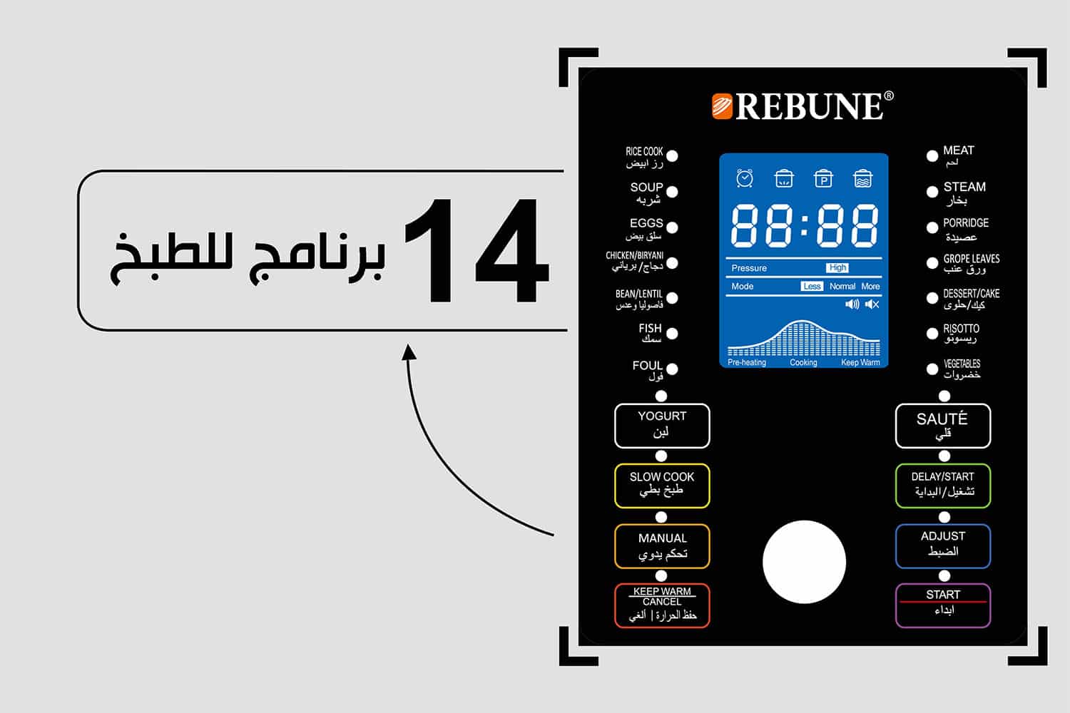 اجعل تجربة الطبخ أكثر متعة وسهولة مع قدر الضغط الكهربائي والقلاية من ريبون سعة 12 لتر الذي يجمع بين التصميم العصري والكفاءة العالية. بلمسة زر واحدة، يمكنك تحضير ألذ الوجبات بسرعة وأمان بفضل شاشة LCD الذكية التي تتيح لك متابعة مراحل الطهي بكل وضوح. مصنوع من ستانلس ستيل مقاوم للصدأ بطبقة داخلية مانعة للالتصاق لتسهيل التنظيف والحفاظ على الطعام صحيًا. إنه الاختيار المثالي لكل من يبحث عن الجودة والأناقة وسهولة الاستخدام اليومي.
