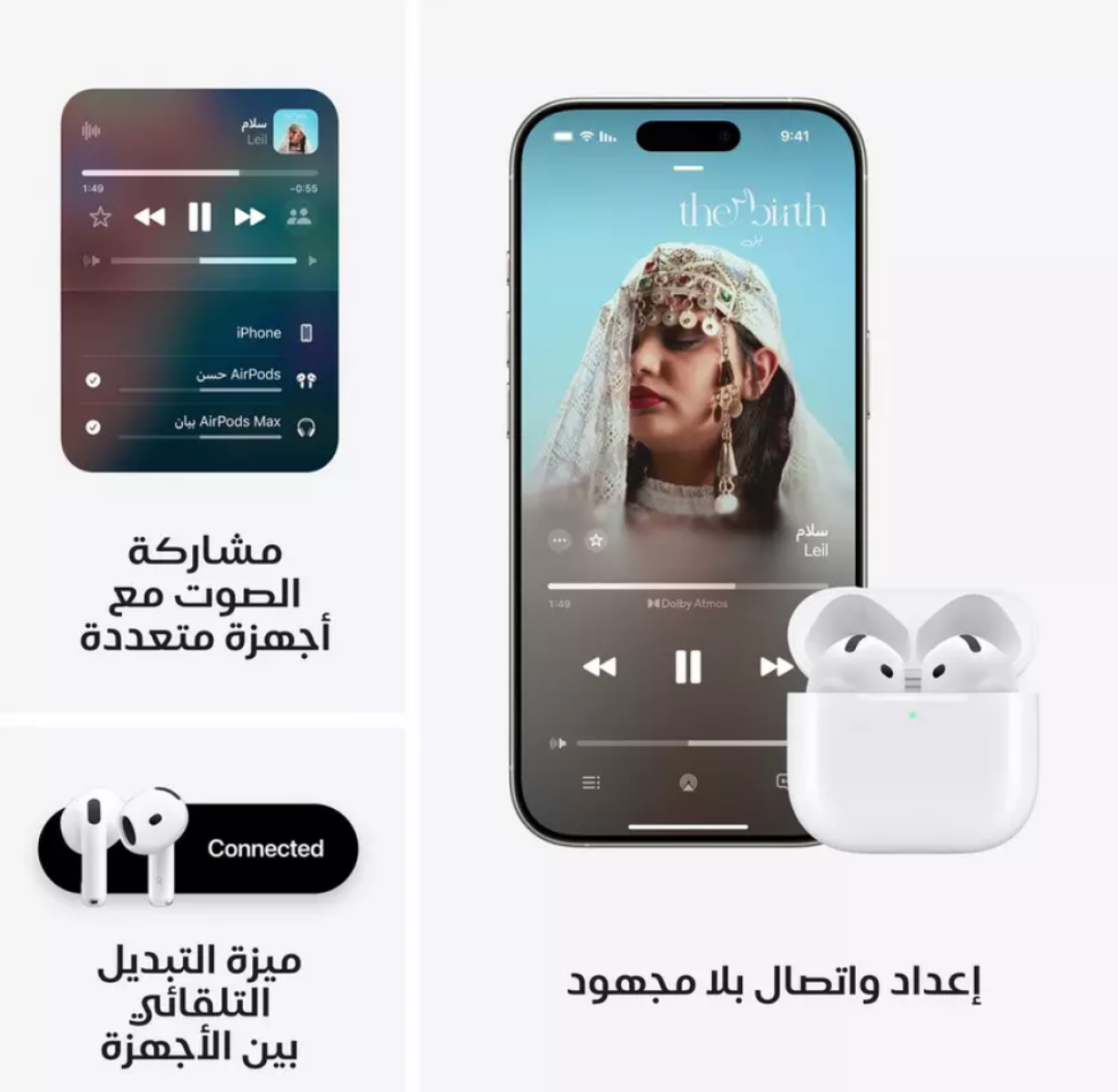 ابل ايربودز 4 سماعات أذن بلوتوث يو أس بي تايب سي ميكروفون مدمج ابيض