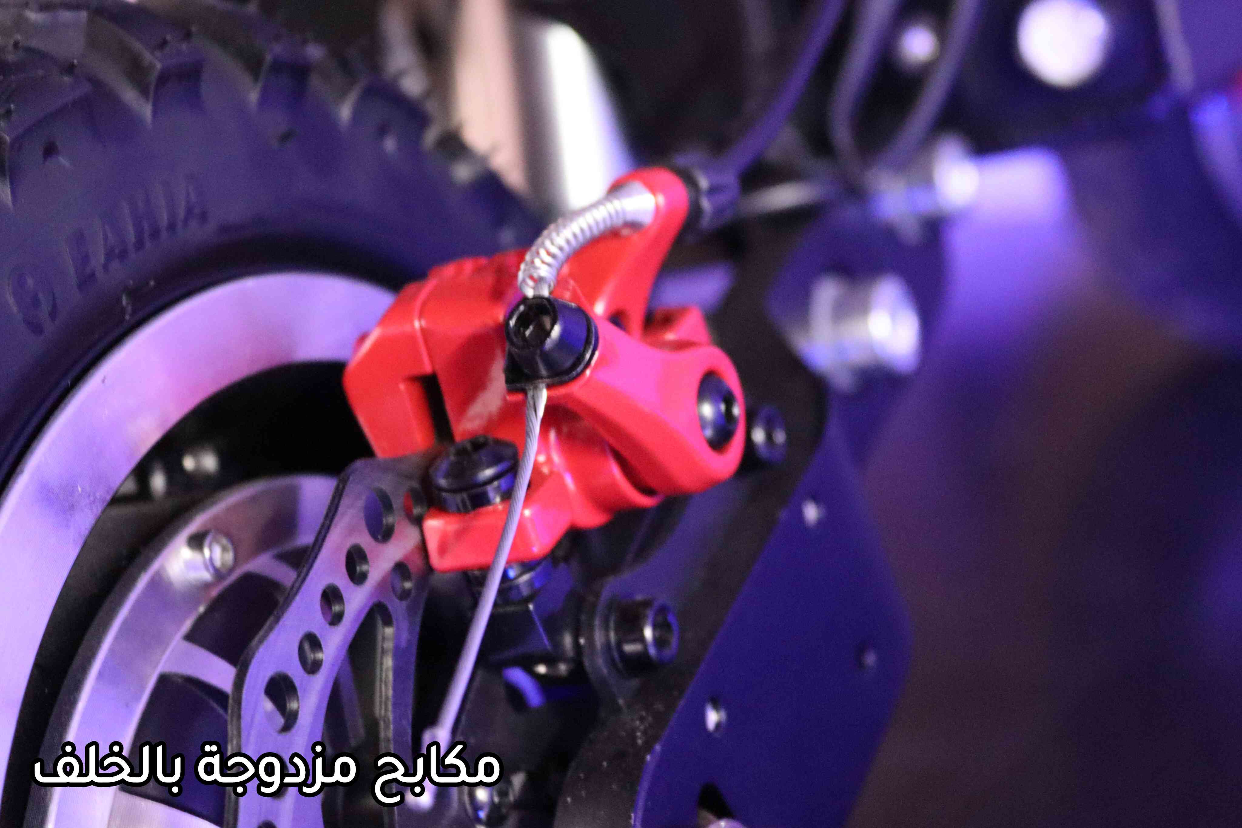 زود السكوتر الكهربائي الوحش بمكابح مزدوجة بالأمام والخلف نظراً لأحتياجة لذالك ( بسبب عزم وقوة المحركين الجبارة ) بالأضافة لحساس توقف كهربائي عند شد مقبض الفرامل ( البريك ) لسرعة بالتوقف