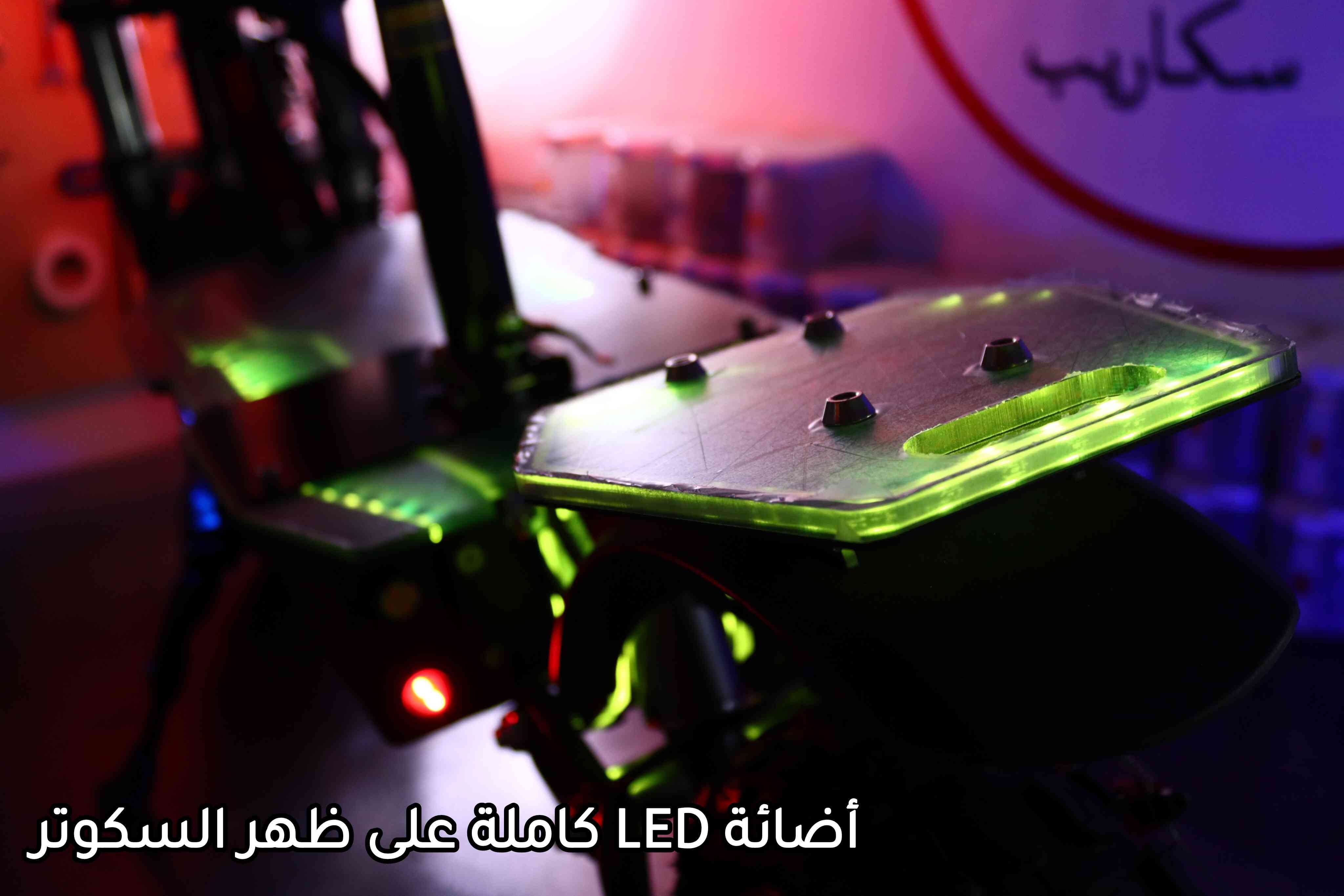 من الجميل بالسكوتر الكهربائي الوحش مظهرة الجميل باليل عند تشغيل الأضائة الكاملة على سطح السكوتر مما يلفت الأنظار ويعطي طابع مميز له