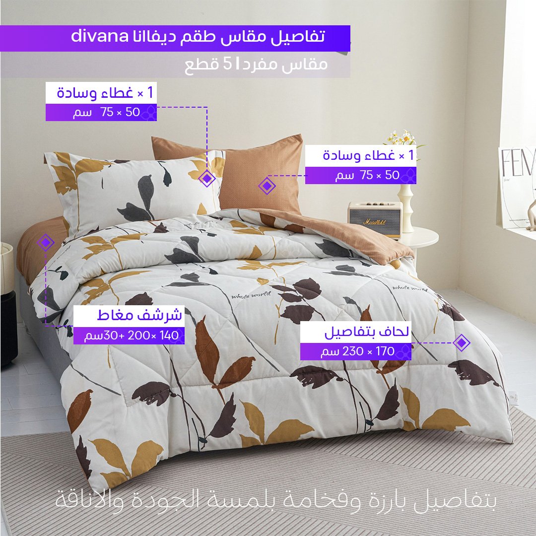 تصميم مزدوج (2 في 1): يمنحكِ المفرش حرية التغيير الفوري؛ وجه مشجر بنقوش جذابة للبهجة، ووجه سادة هادئ للاسترخاء، مما يجعله قطعة عملية ومتجددة دائماً.