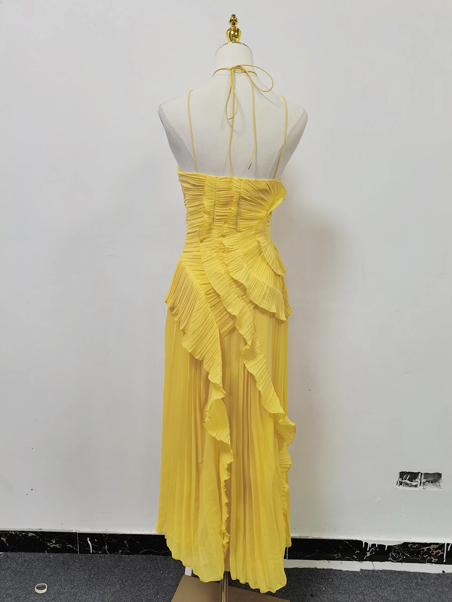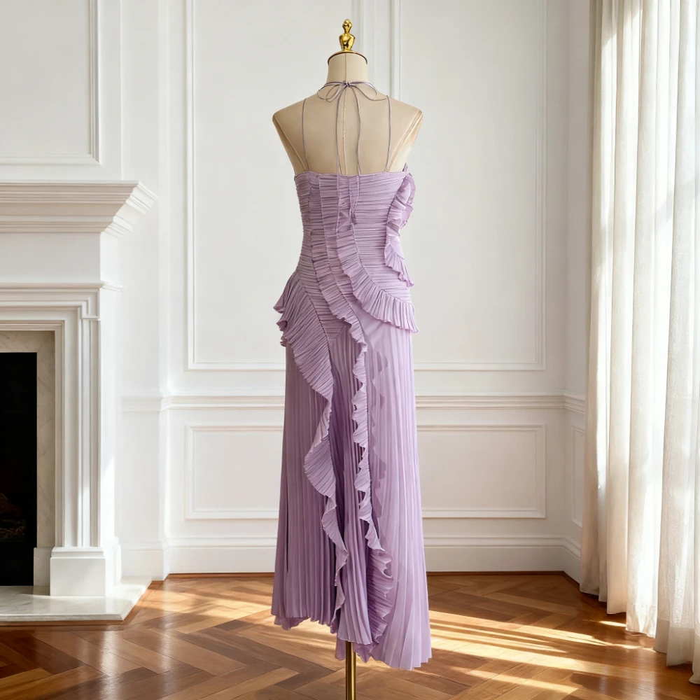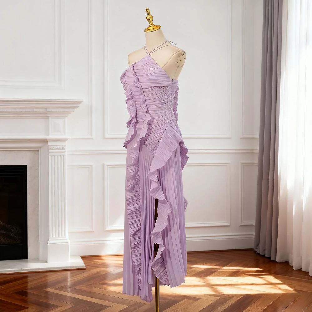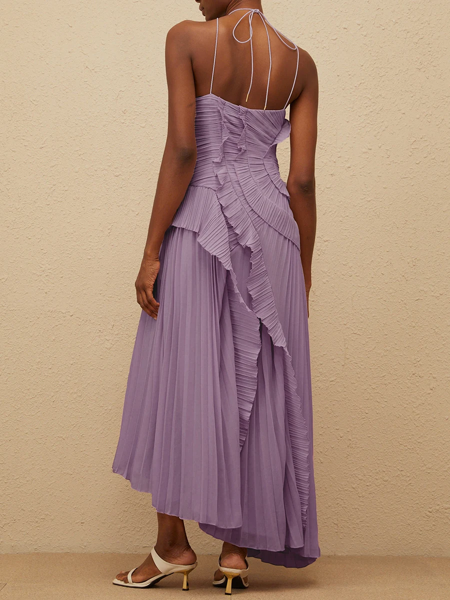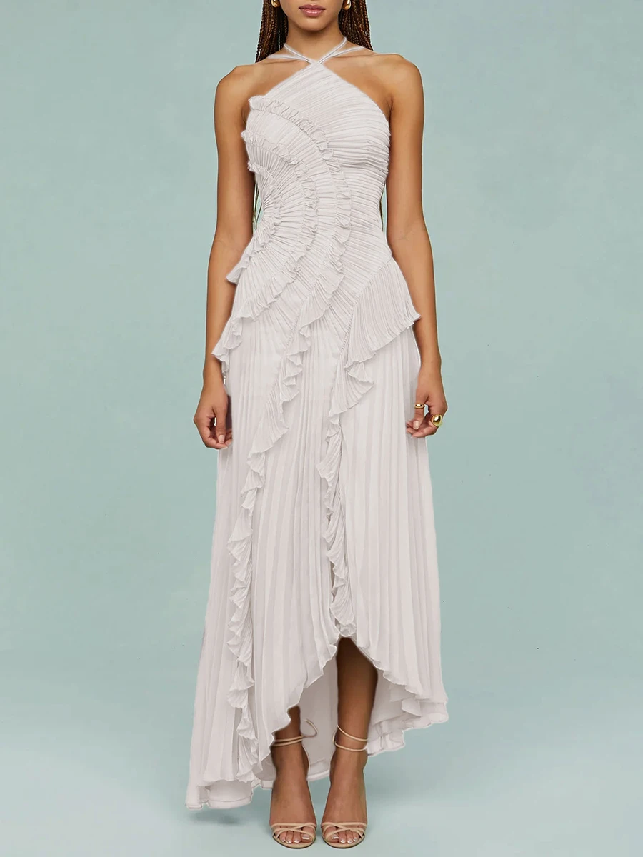 فستان VGH مثير غير متماثل بدون ظهر للنساء بدون أكمام وكشكشة مقسمة وخصر عالٍ فساتين تنحيف نسائية جديدة