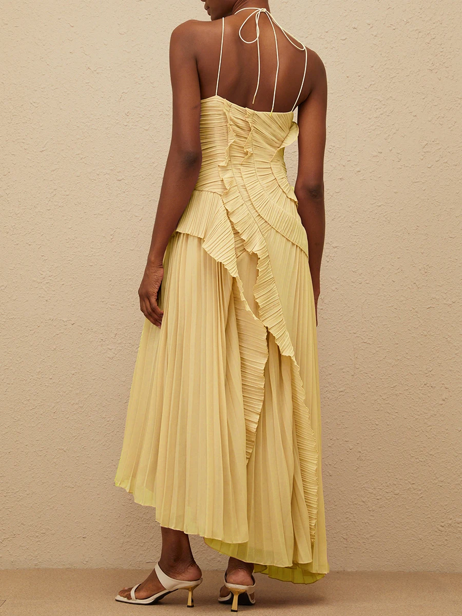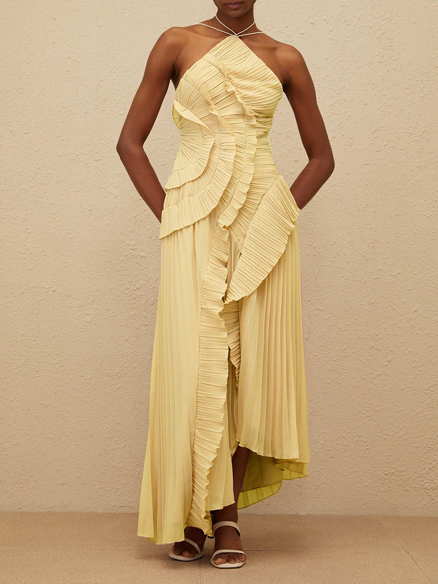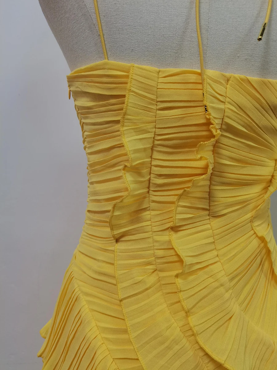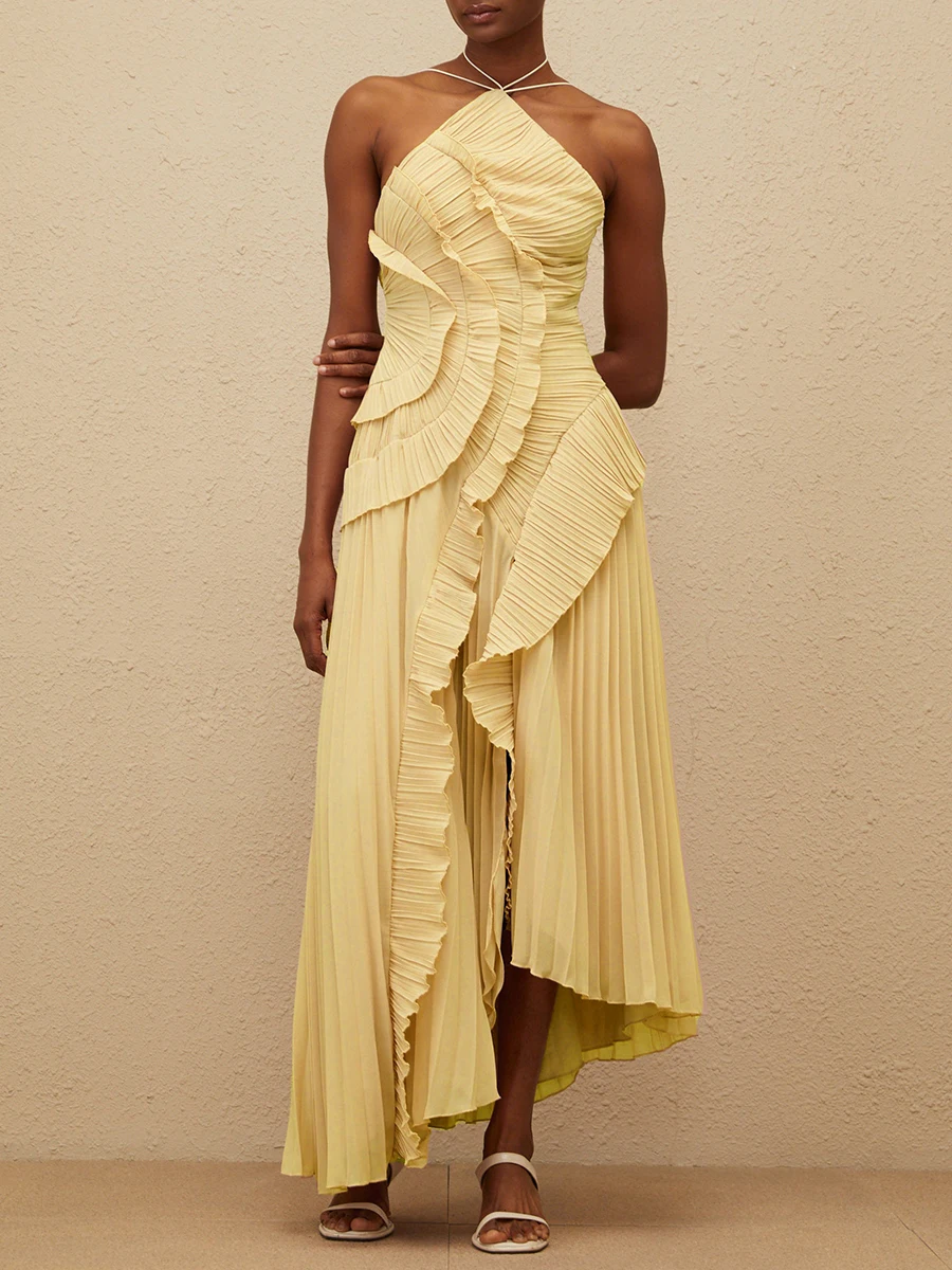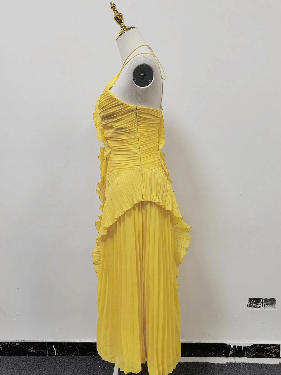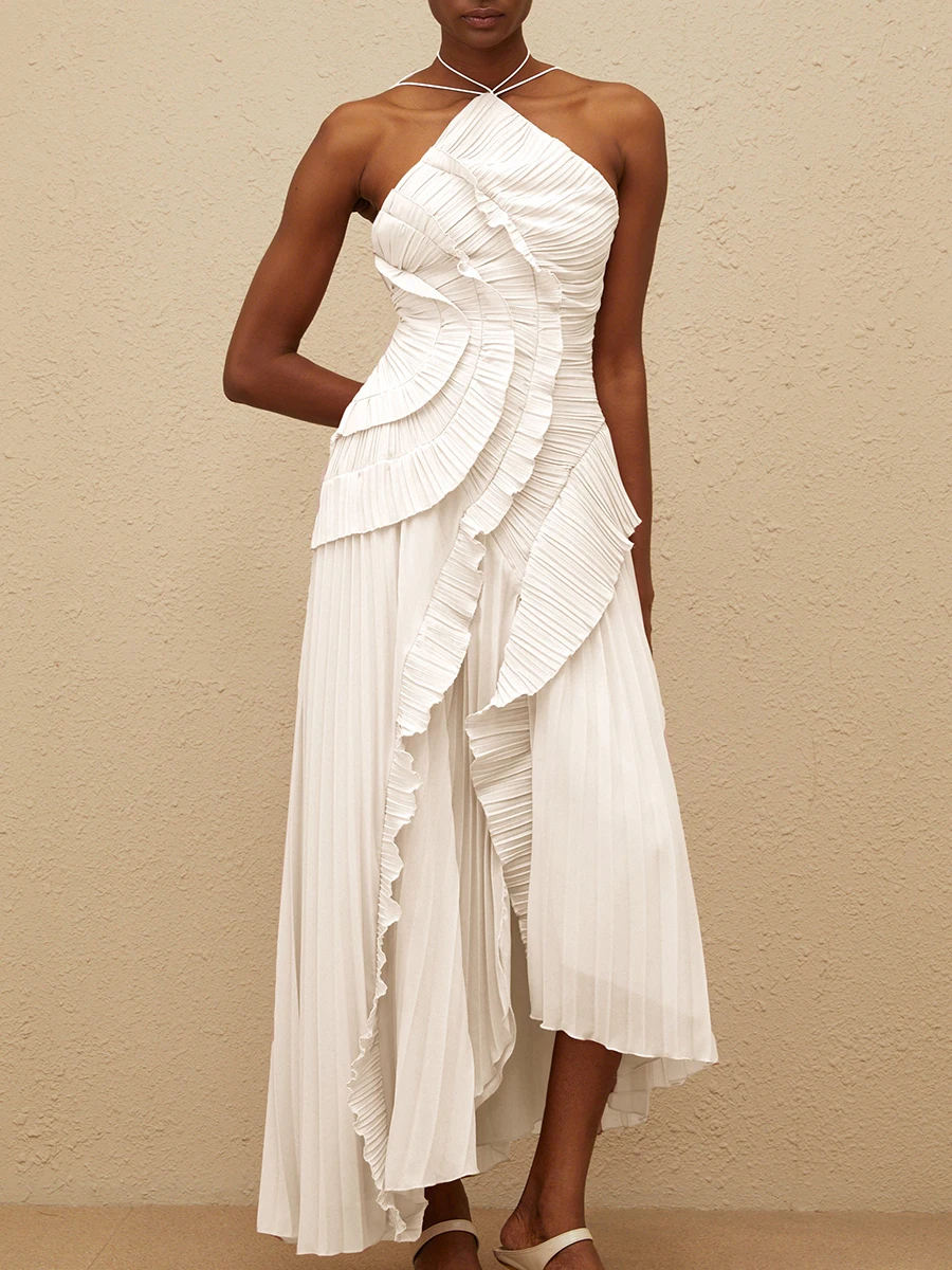 فستان VGH مثير غير متماثل بدون ظهر للنساء بدون أكمام وكشكشة مقسمة وخصر عالٍ فساتين تنحيف نسائية جديدة