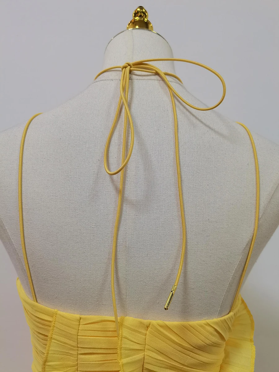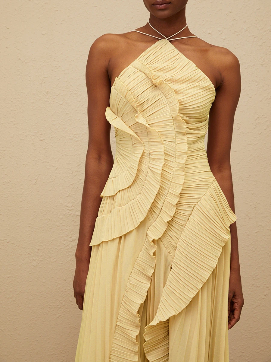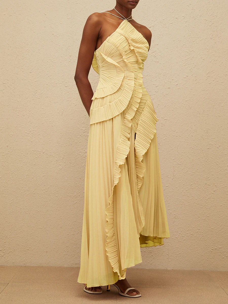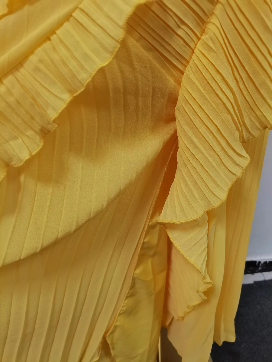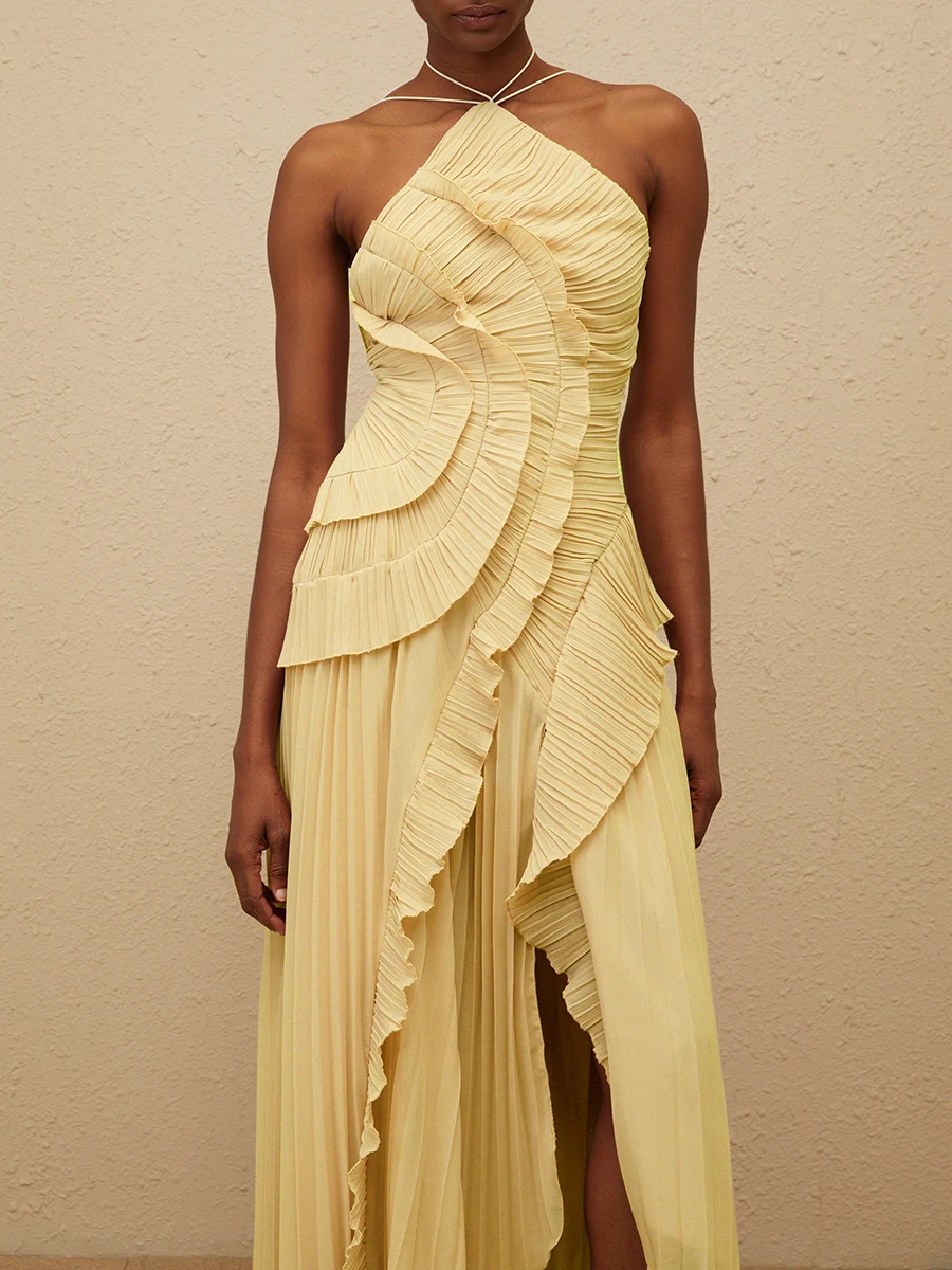 فستان VGH مثير غير متماثل بدون ظهر للنساء بدون أكمام وكشكشة مقسمة وخصر عالٍ فساتين تنحيف نسائية جديدة