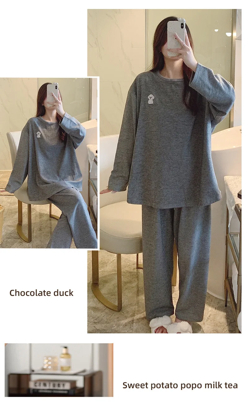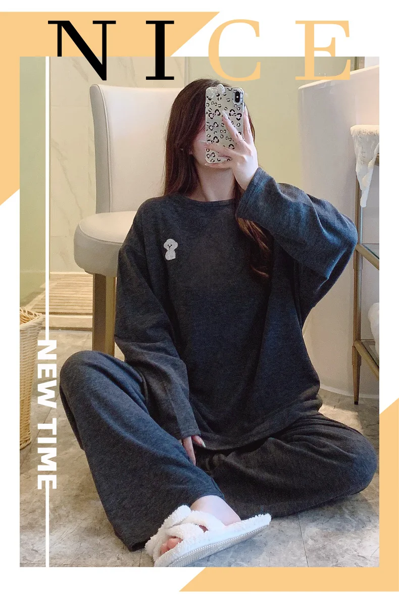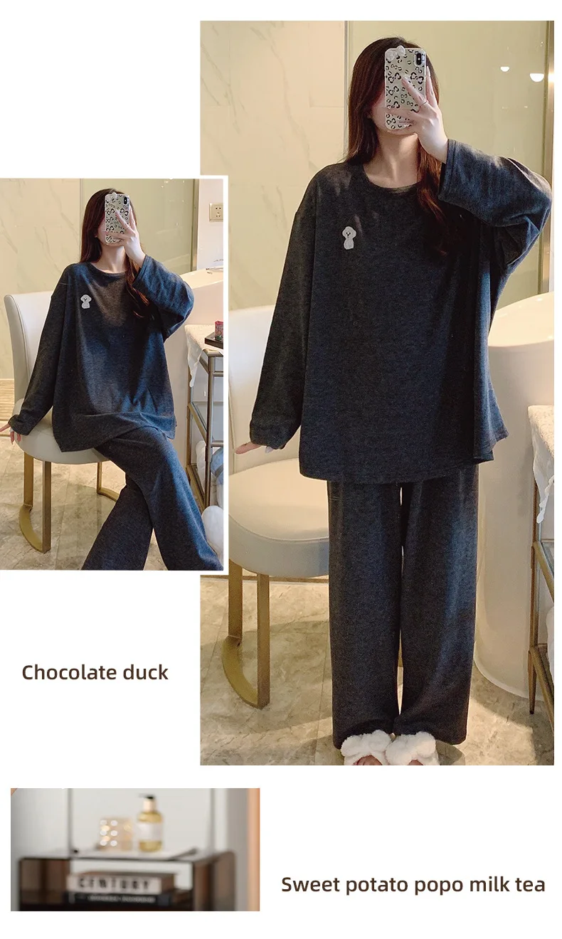 ملابس نوم شتوية كبيرة الحجم كاجوال من المخمل الأغنام بأكمام طويلة وغطاء للرأس ملابس منزلية مريحة للنساء بيجامات حريرية ناعمة على شكل جزيرة