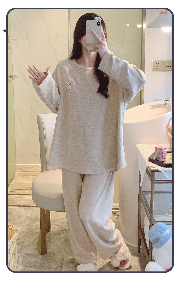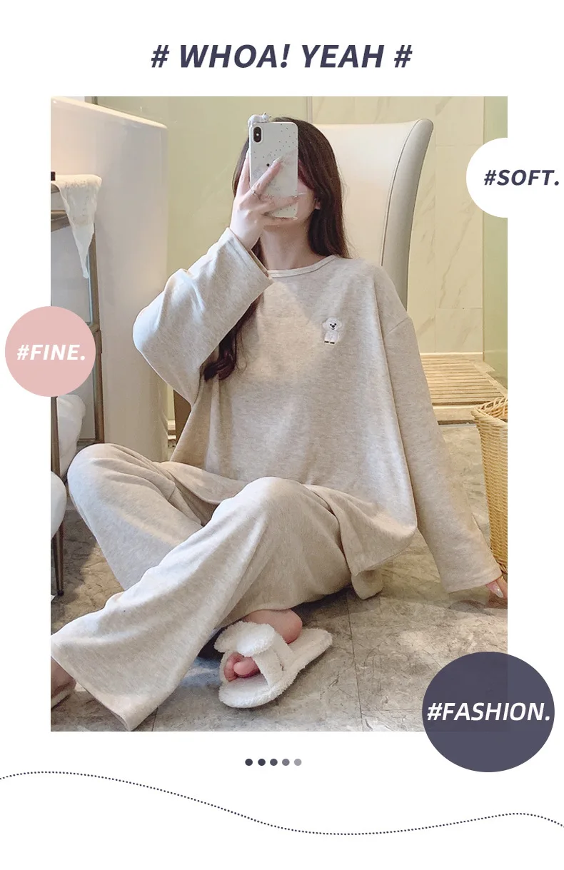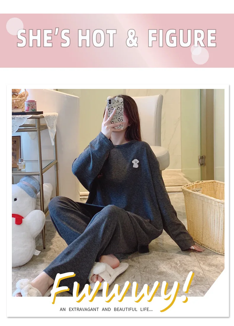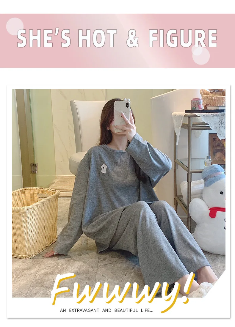 ملابس نوم شتوية كبيرة الحجم كاجوال من المخمل الأغنام بأكمام طويلة وغطاء للرأس ملابس منزلية مريحة للنساء بيجامات حريرية ناعمة على شكل جزيرة