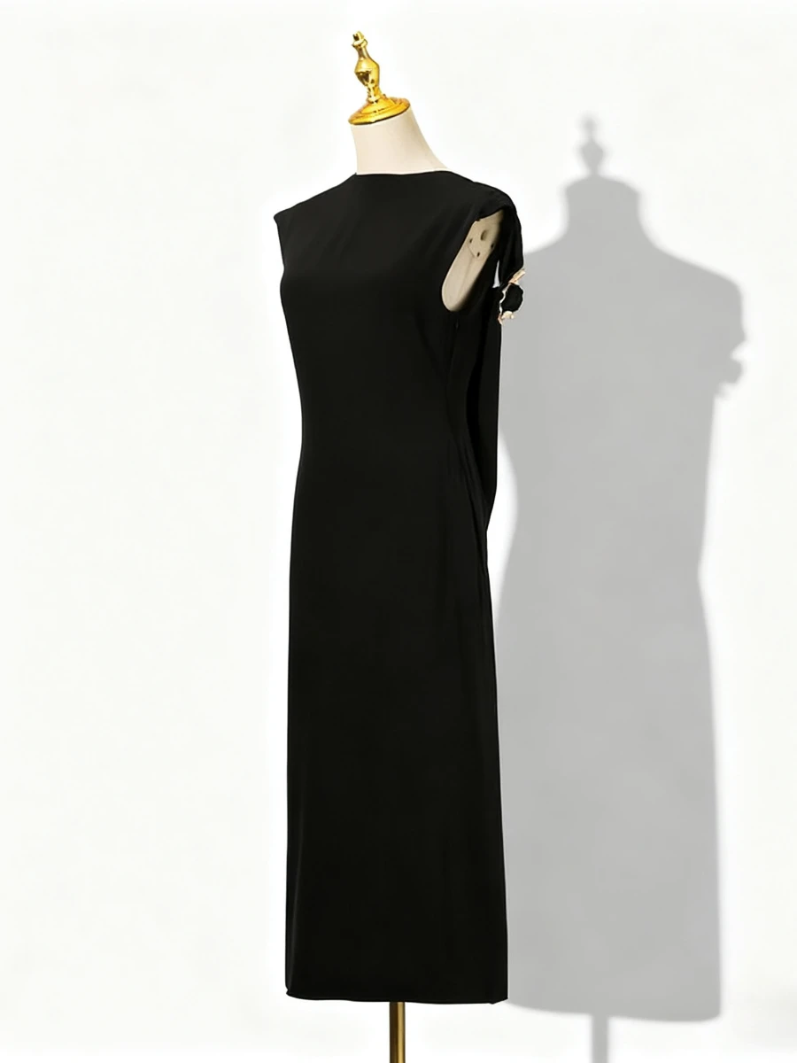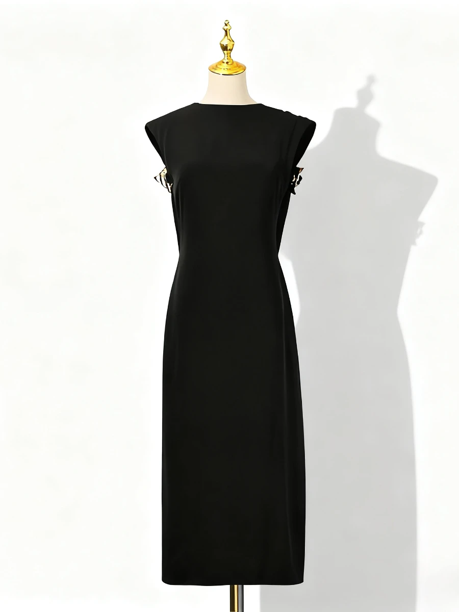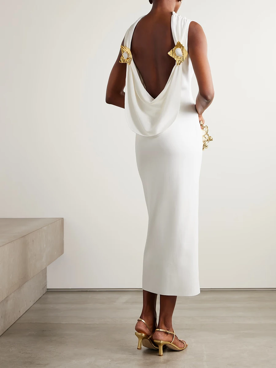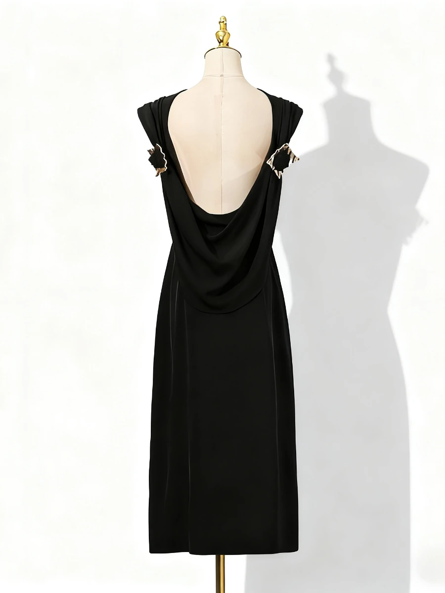 VGH ثوب مسائي فاخر للنساء رقبة دائرية بدون أكمام عالي الخصر مزخرف معدني فساتين مزاجية بدون ظهر للسيدات