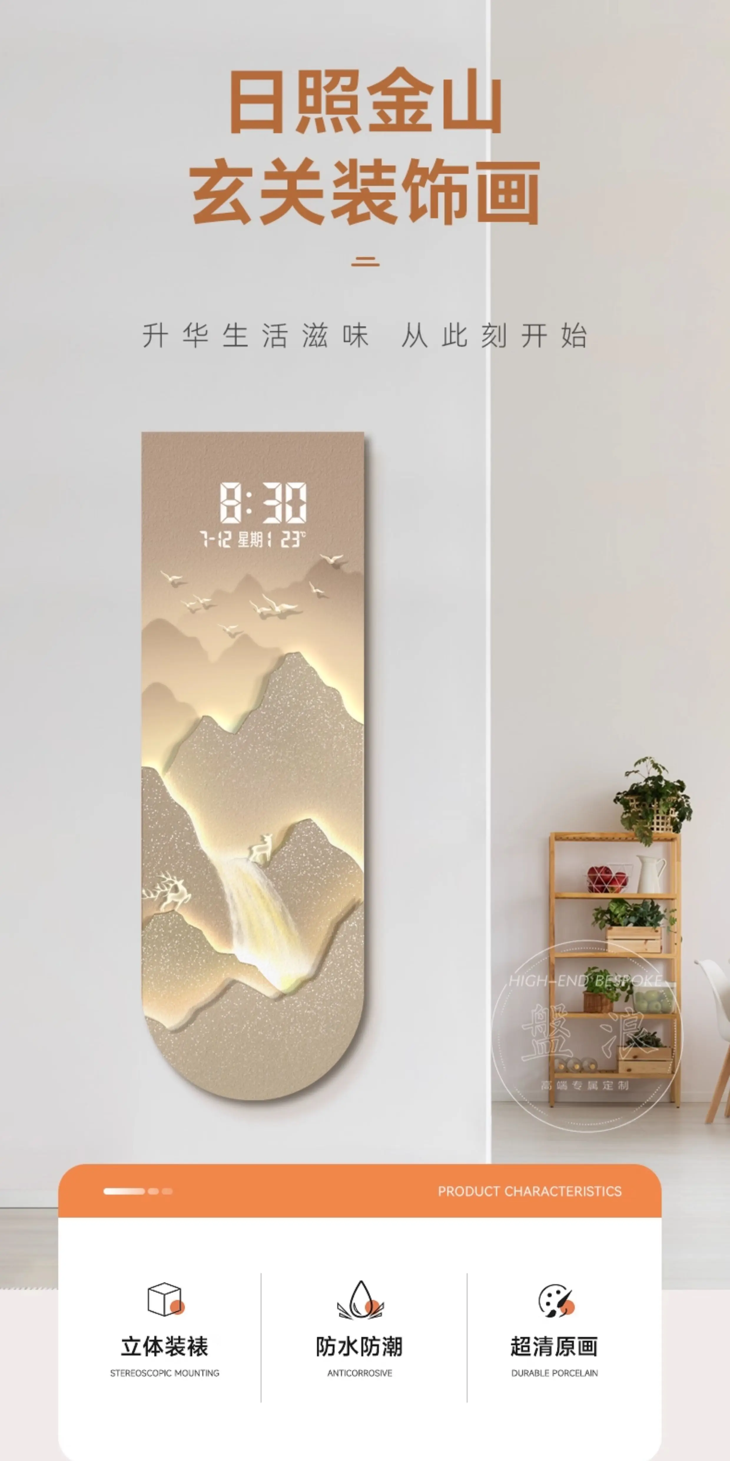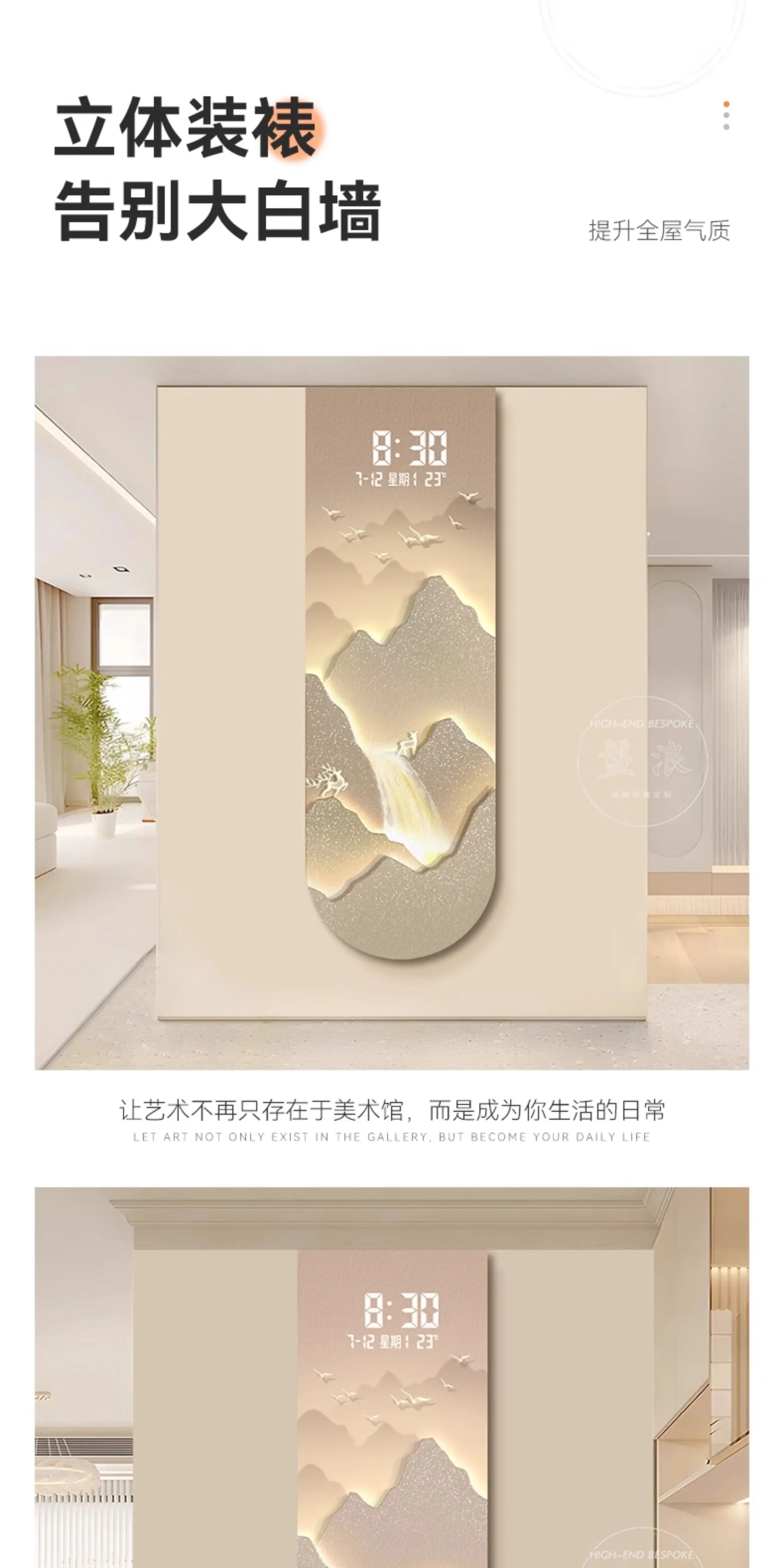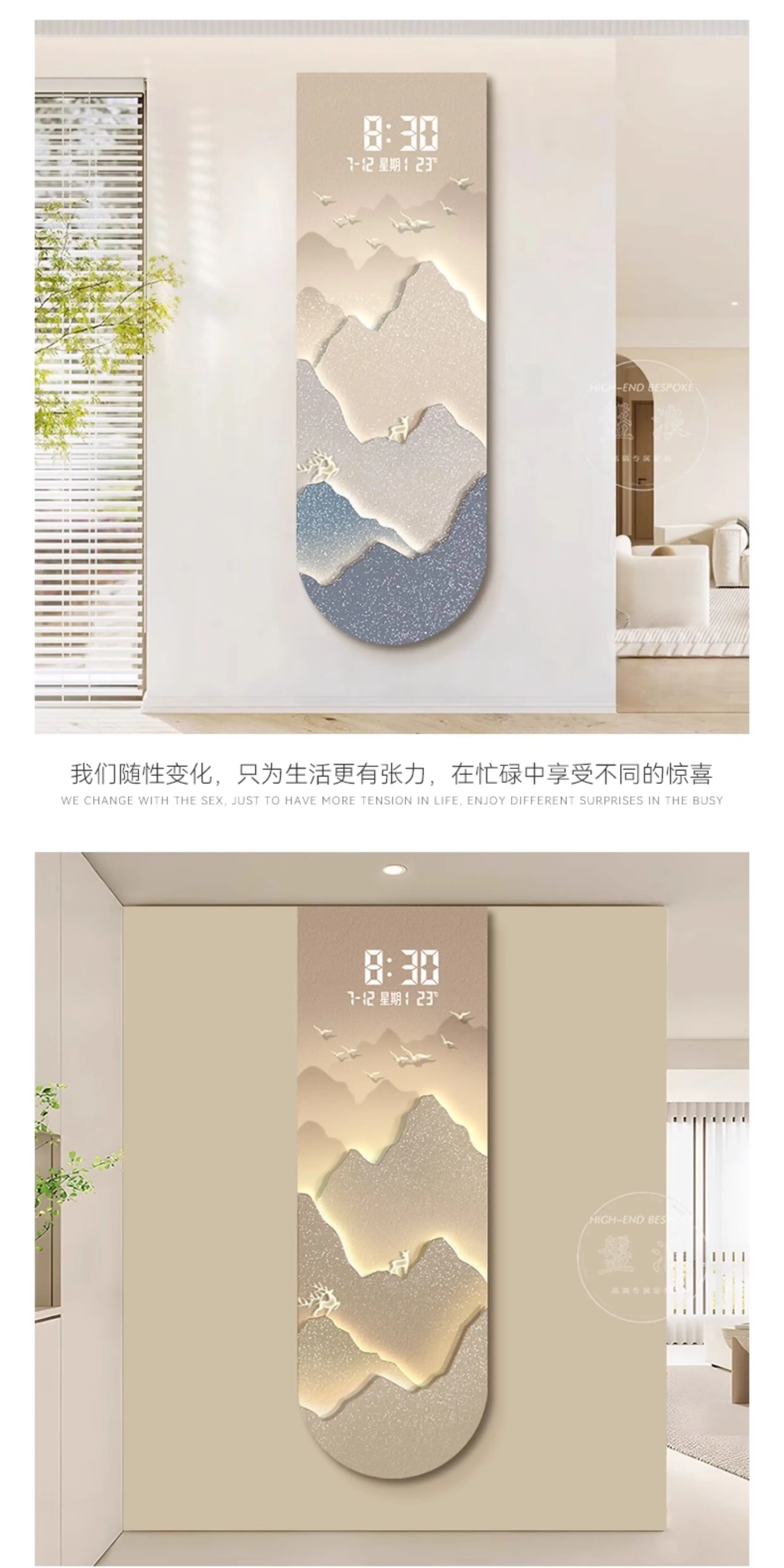 Sunlit الذهبي جبل مدخل ديكور اللوحة النمط الصيني الجديد الإبداعية اللمس الحساسة ساعة رقمية الراقية غرفة المعيشة LED