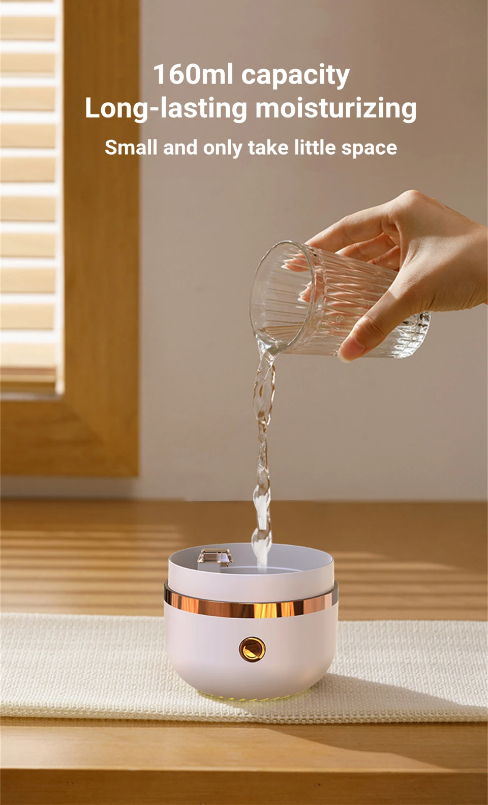 تعمل تقنية الموجات فوق الصوتية الخاصة بالموزع على تقسيم الزيوت العطرية إلى جزيئات بحجم النانو، مما يطلق رذاذًا ناعمًا لا يملأ الهواء برائحتك المفضلة فحسب، بل يعمل أيضًا بمثابة مرطب.مع حجم رش يبلغ 40 مل/ساعة، فإنه يحافظ على مستوى رطوبة مريح، مما يجعله حلاً فعالاً للهواء الجاف.سواء كنت تتطلع إلى تحسين حالتك المزاجية، أو تحسين جودة الهواء، أو مجرد الاستمتاع بصوت الماء المهدئ، فقد تم تصميم هذا الناشر لتلبية احتياجاتك.حجمها الصغير وتصميمها خفيف الوزن يجعل من السهل نقلها من غرفة إلى أخرى، مما يضمن أن فوائد الزيوت العطرية والعلاج العطري في متناول اليد دائمًا.