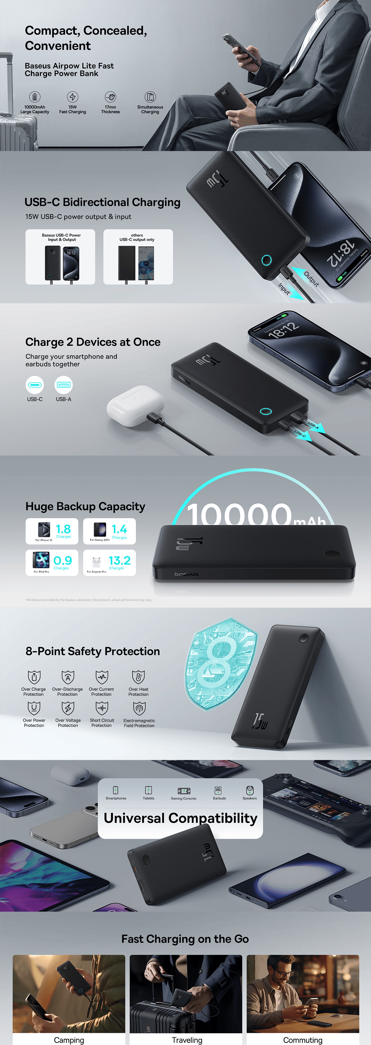 سماعة AirPlus من TENPLUS + بطارية بيسوس متنقلة بسعة 10000ملي امبير بقوة 15 واط