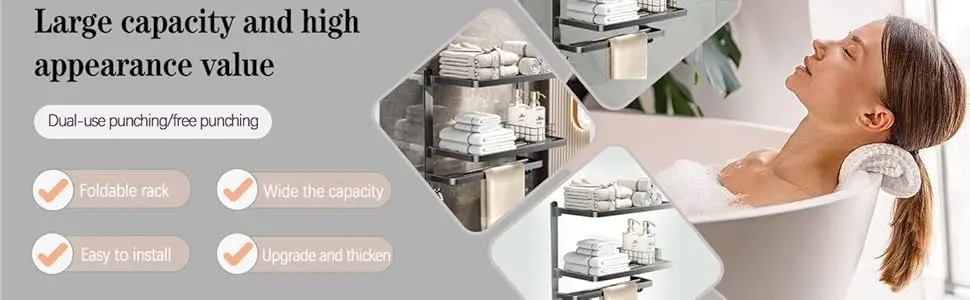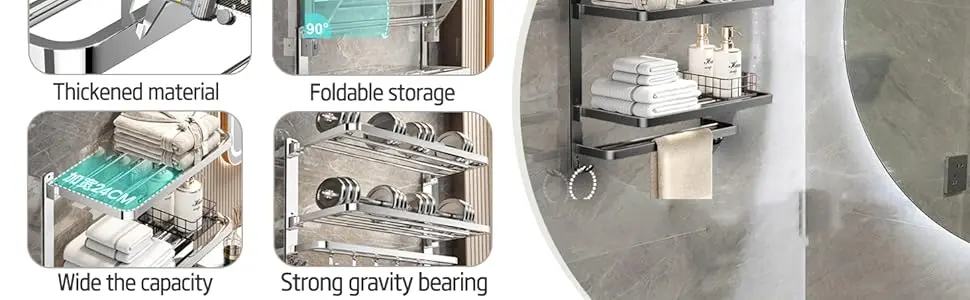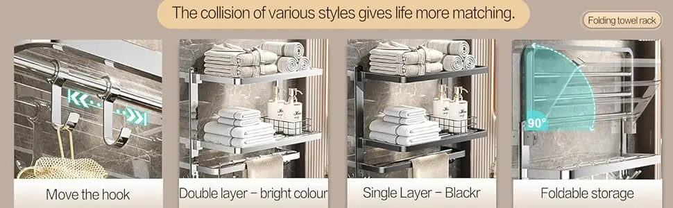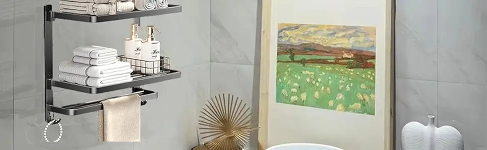 للحمام، رف مناشف مثبت على الحائط من 3 طبقات مع خطافات، حامل مناشف قابل للطي من الفولاذ المقاوم للصدأ مقاس 16 بوصة لتخزين الحمام وO